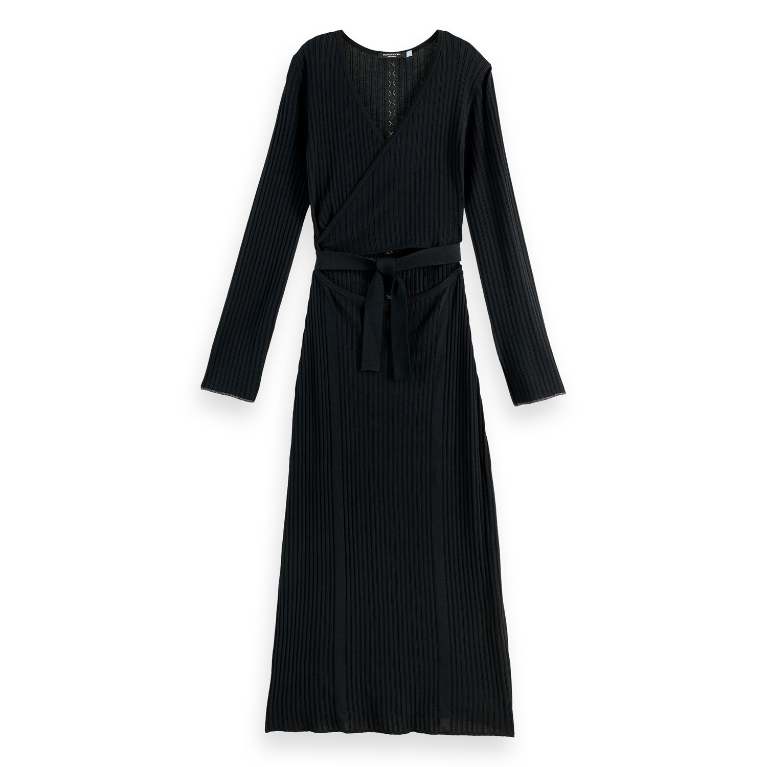 SCOTCH&SODA WOMEN'S SKINNY RIB KNITTED WRAP DRESS IN METEORITE