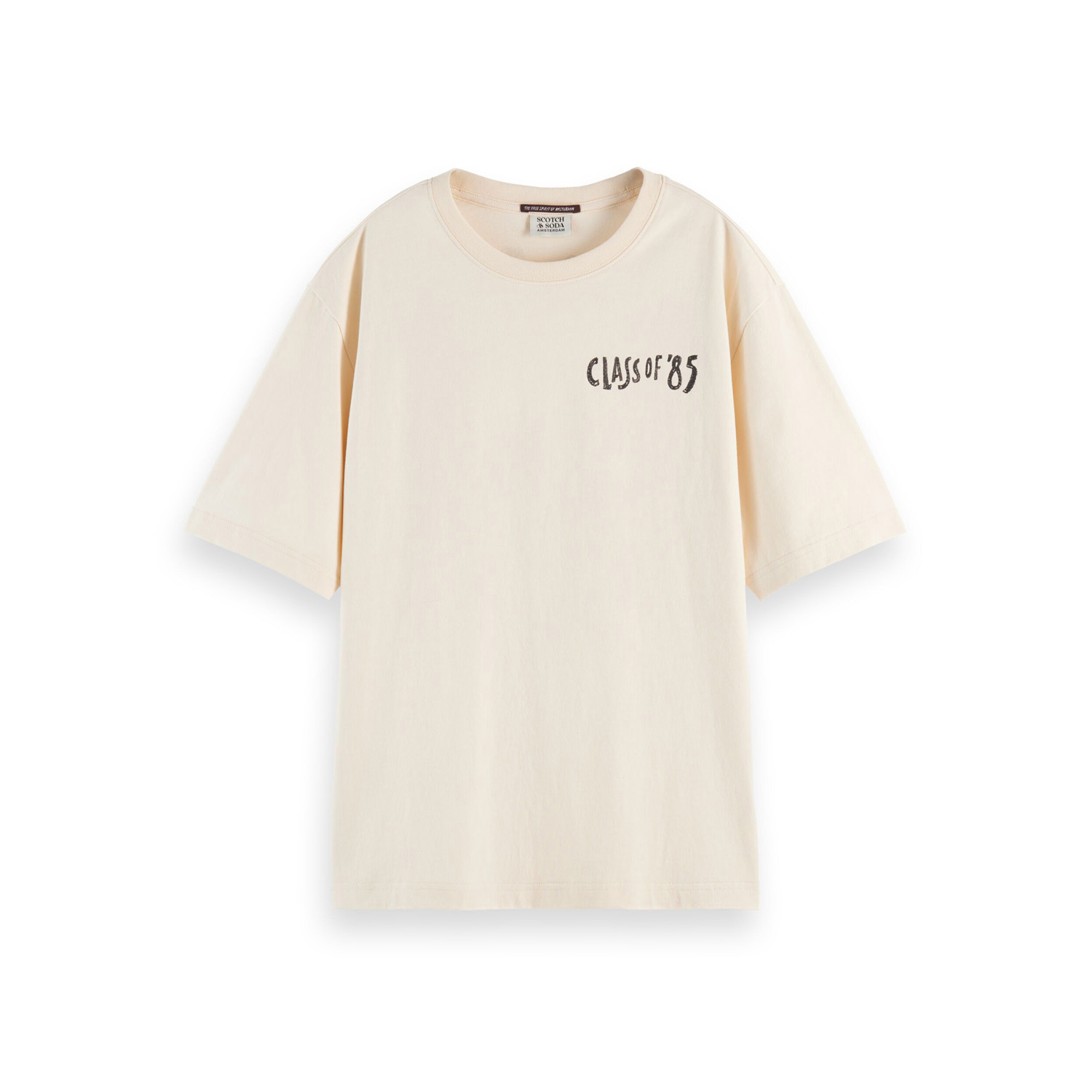 SCOTCH&SODA WOMEN'S WASHED ARTWORK LOOSE FIT T-SHIRT IN EGGNOG
