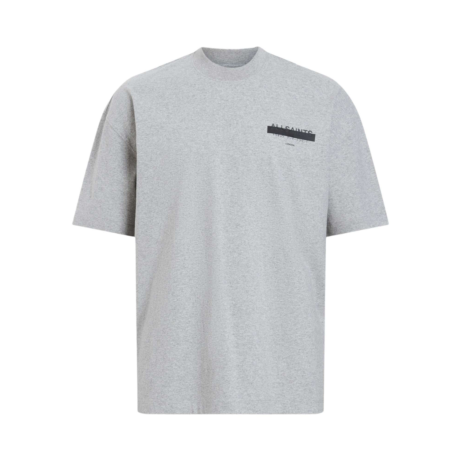 ALLSAINTS MEN'S REDACT OVERSIZED EMBROIDERED LOGO T-SHIRT IN GREY MARL