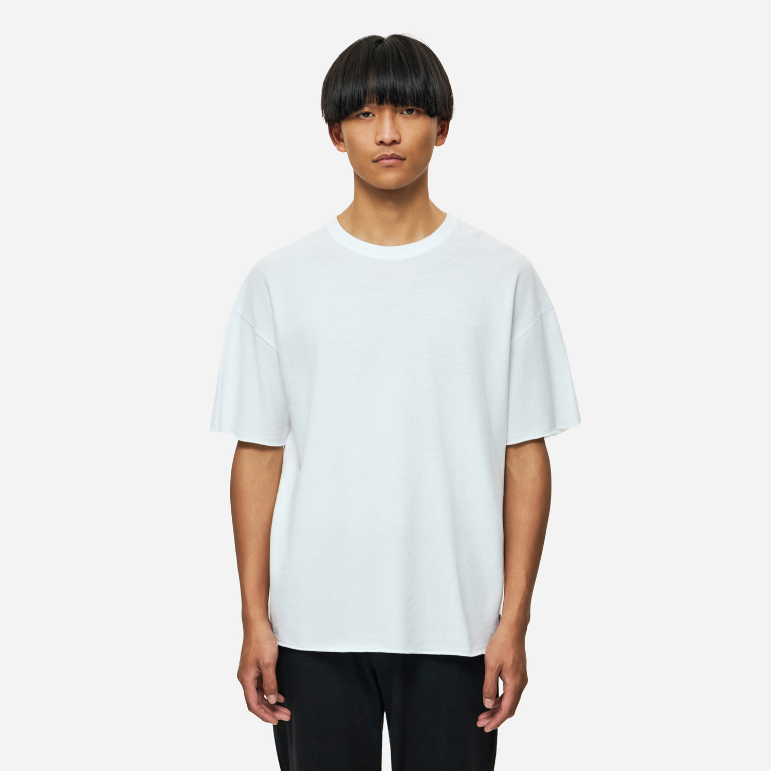 DIRTY LAUNDRY MEN'S PIQUET T-SHIRT WITH RAW EDGES IN WHITE