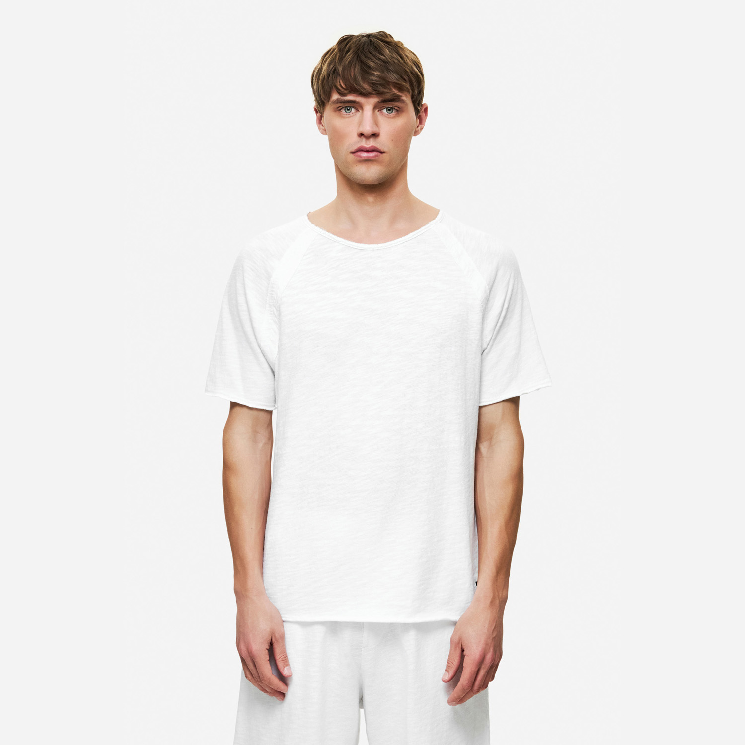 DIRTY LAUNDRY MEN'S RAGLAN T-SHIRT WITH RAW EDGES IN WHITE