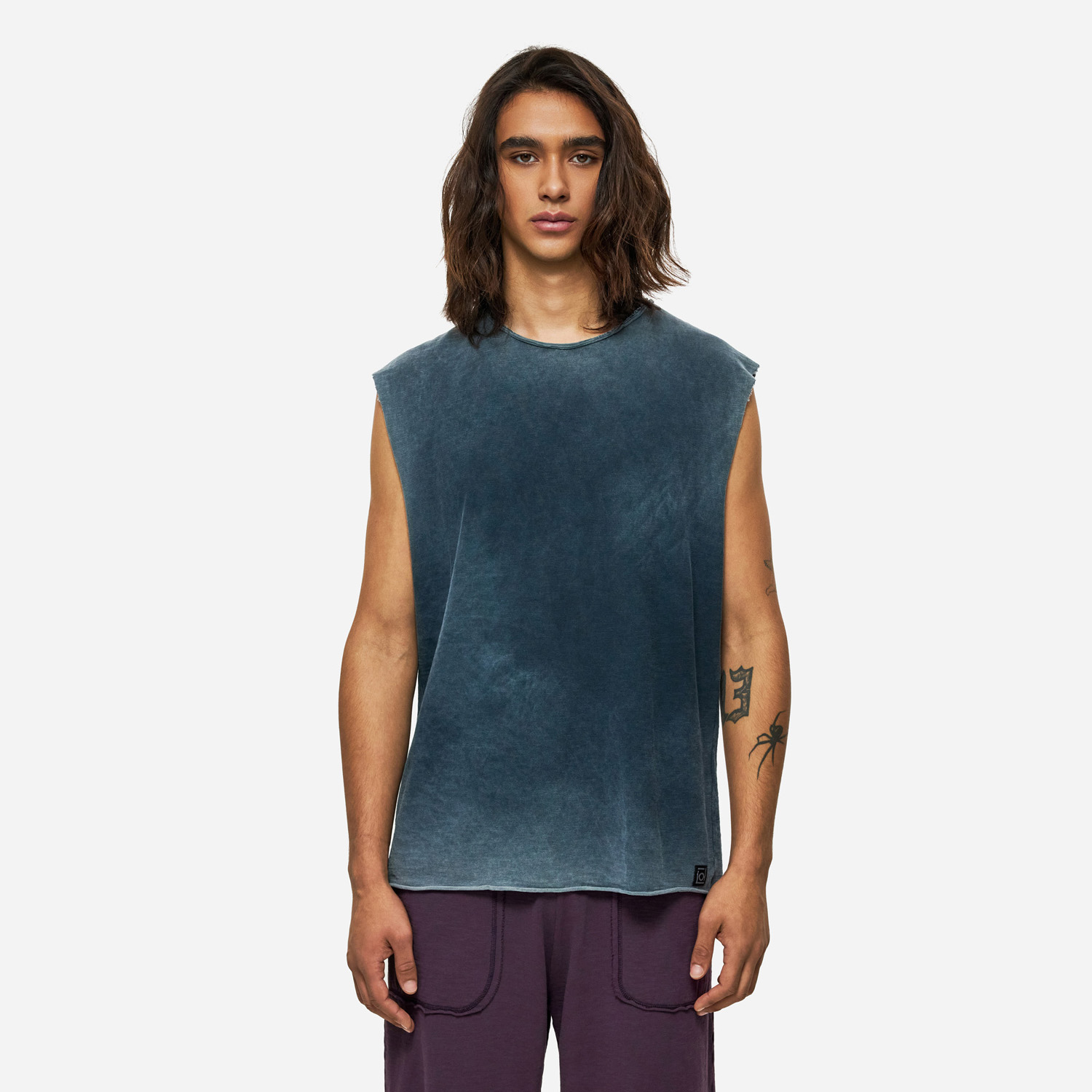 DIRTY LAUNDRY MEN'S SLUB TANK TOP WITH RAW EDGES IN SHADOW BLUE