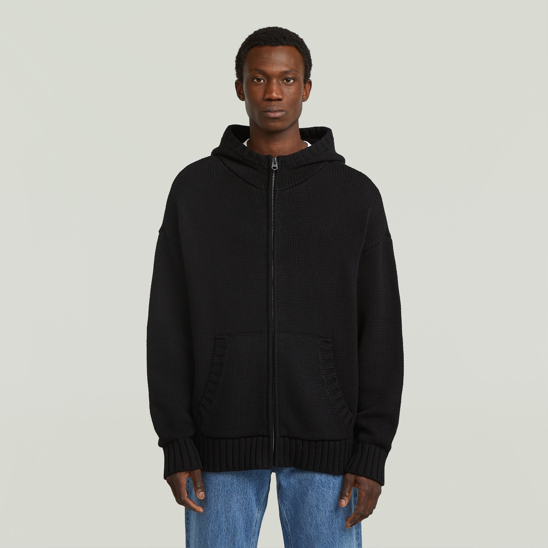 G-STAR MEN'S HEAVY FULL ZIP HOODED CARDIGAN IN DK BLACK