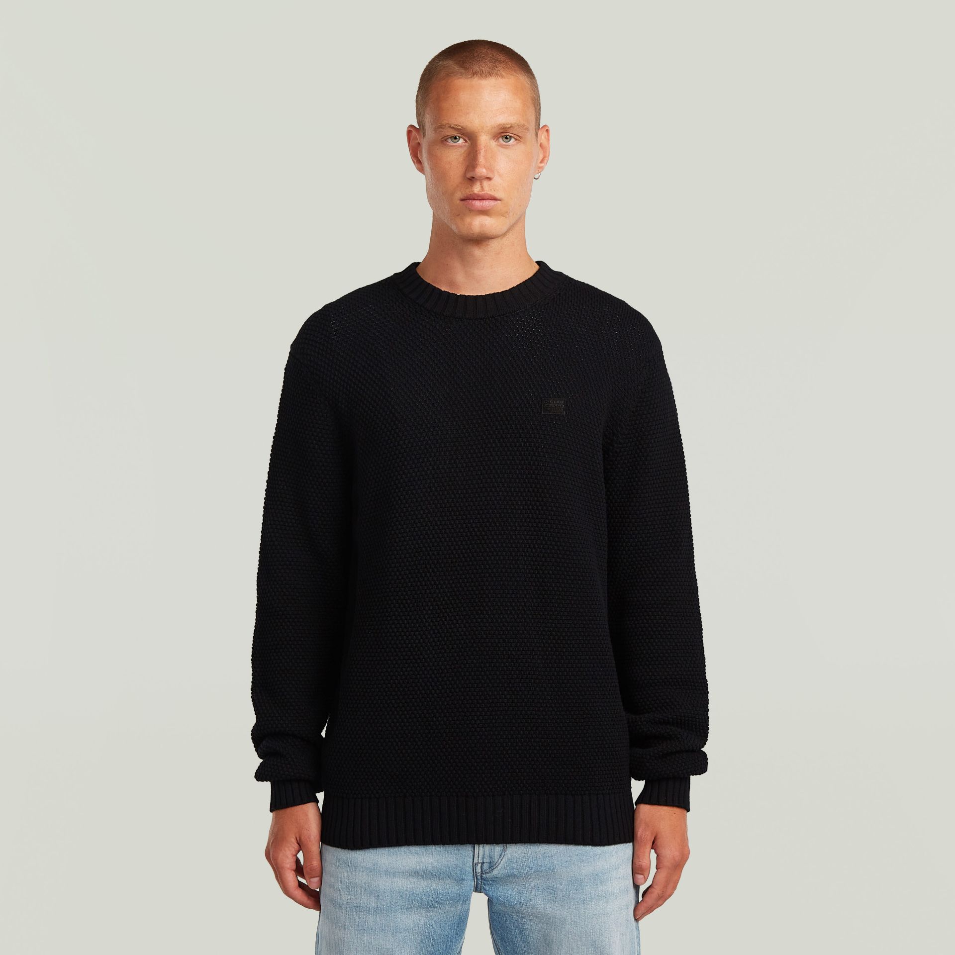G-STAR MEN'S HONEY COMB STRUCTURE SWEATER IN DK BLACK