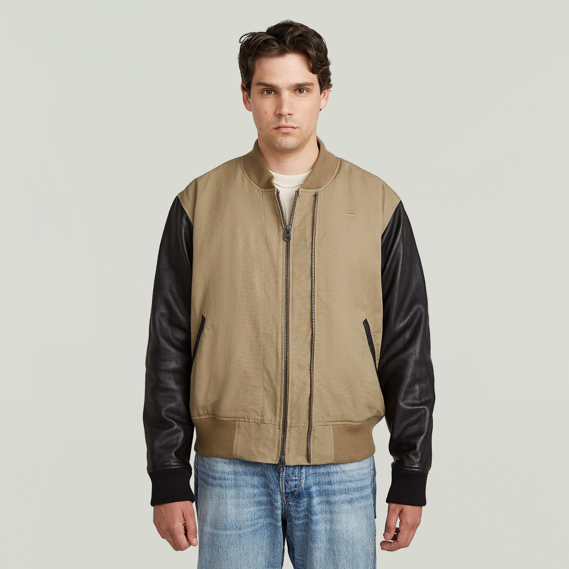 G-STAR MEN'S VARSITY LEATHER JACKET IN SAFARI