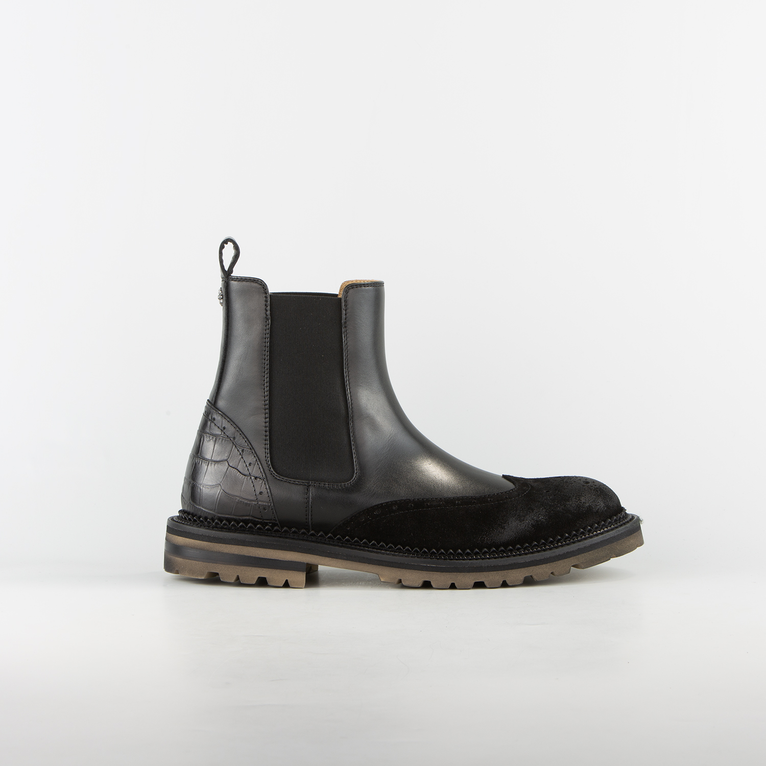 JOHN RICHMOND MEN'S KING BOOTS IN MIXED LEATHER IN BLACK