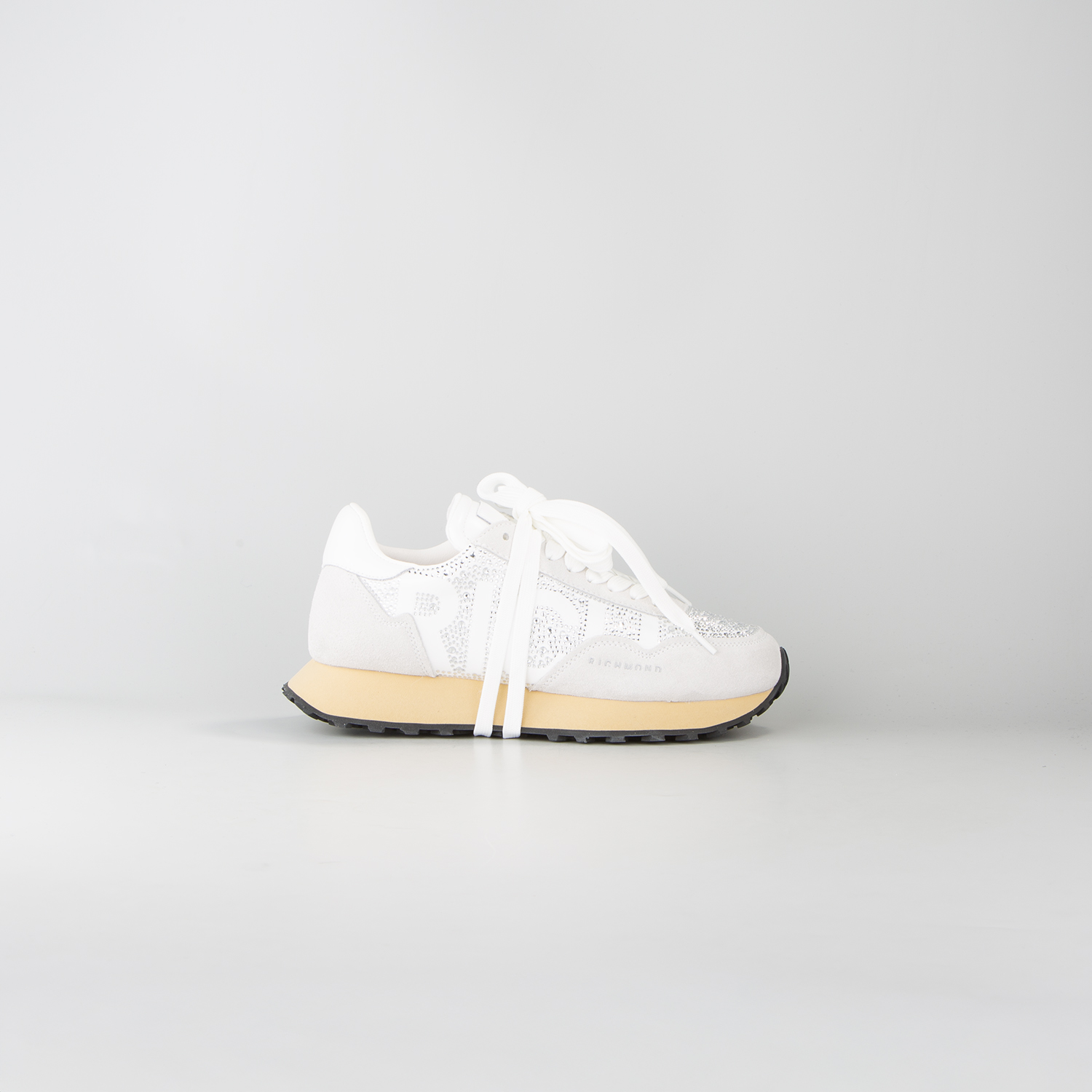 JOHN RICHMOND WOMEN'S SUKAJAN MIXED LEATHER SNEAKERS WITH RICH PRINT AND STRASS - WHITE