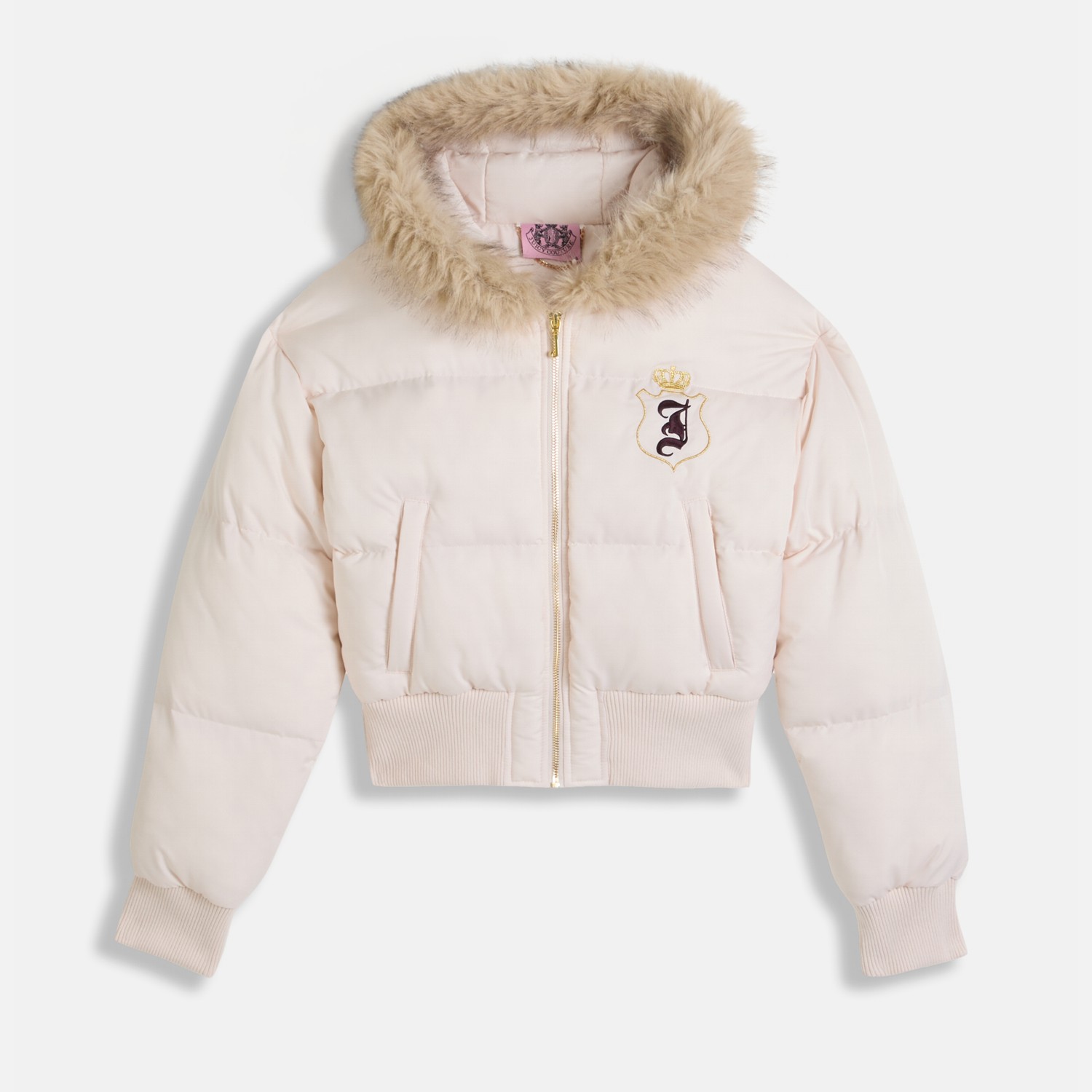 JUICY COUTURE WOMEN'S CROP PUFFER JACKET WITH HOUSE OF JUICY EMBROIDERY IN PINK