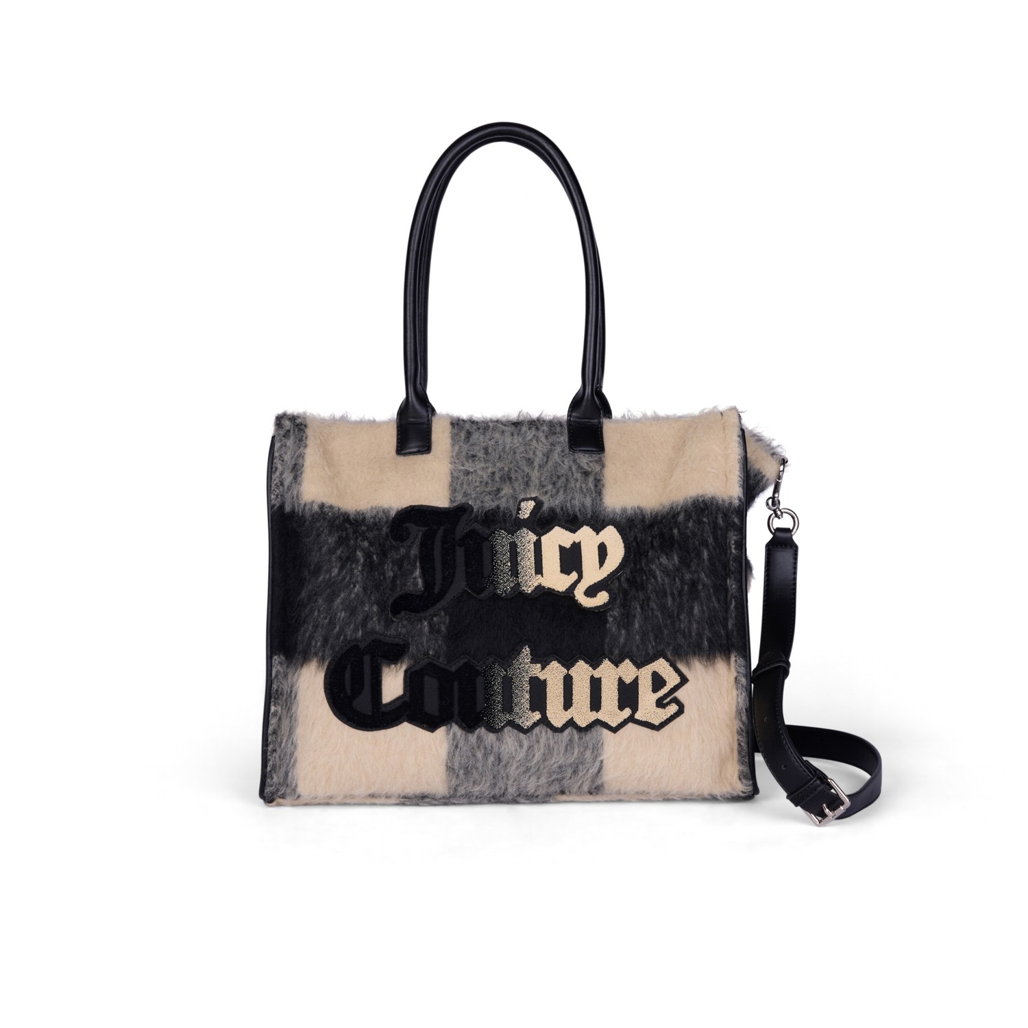 JUICY COUTURE WOMEN'S IRIS TAPESTRY PATCH LARGE SHOPPING BAG IN BLACK