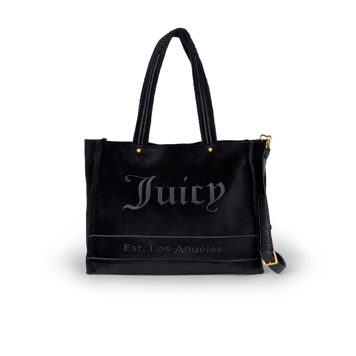 JUICY COUTURE WOMEN'S IRIS VELVET LARGE SHOPPING BAG IN BLACK