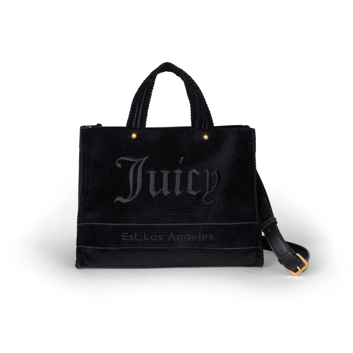 JUICY COUTURE WOMEN'S IRIS VELVET MEDIUM SHOPPING BAG IN BLACK