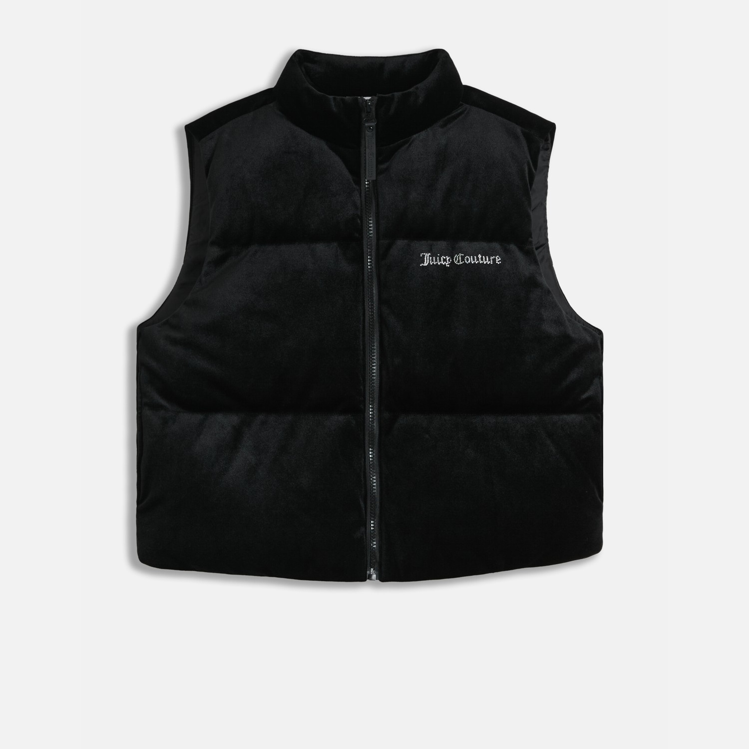 JUICY COUTURE WOMEN'S VELOUR CROP GILET WITH JUICY DIAMANTE LOGO IN BLACK