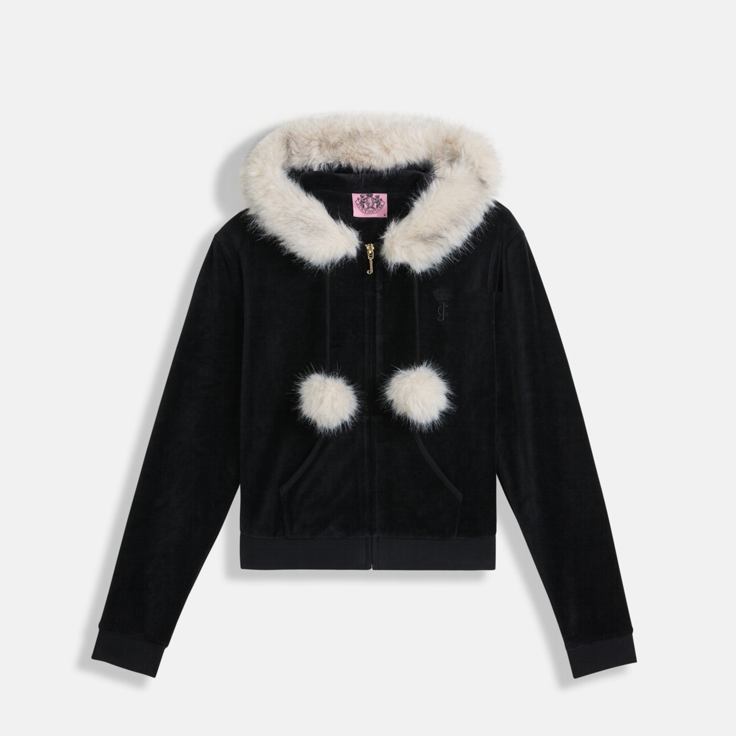 JUICY COUTURE WOMEN'S VELOUR HOODIE WITH HERITAGE BRANDING IN BLACK