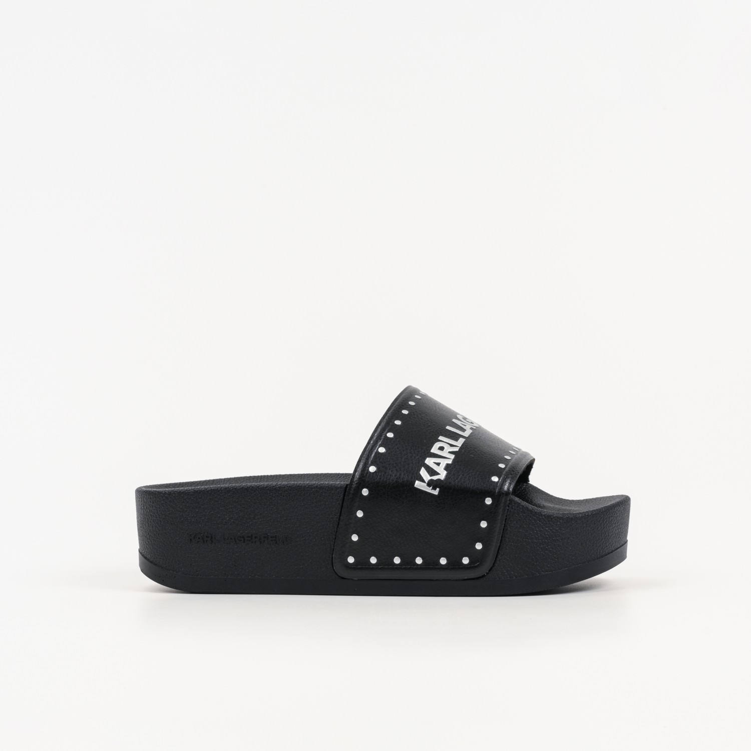 KARL LAGERFELD WOMEN'S KONDO MAXI II STUD BORDER SLIDE IN BLACK W/SILVER