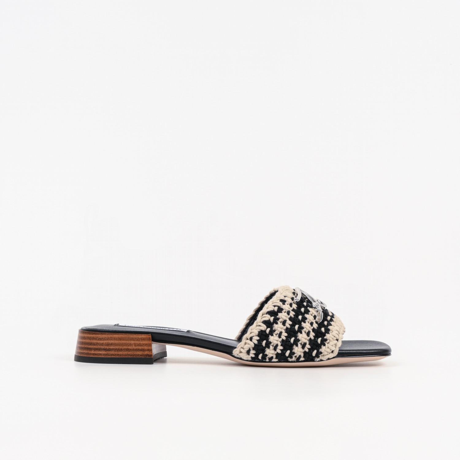 KARL LAGERFELD WOMEN'S PETALO II CROCHET SIGNIA SLIDE IN BLACK W/OFF WHITE