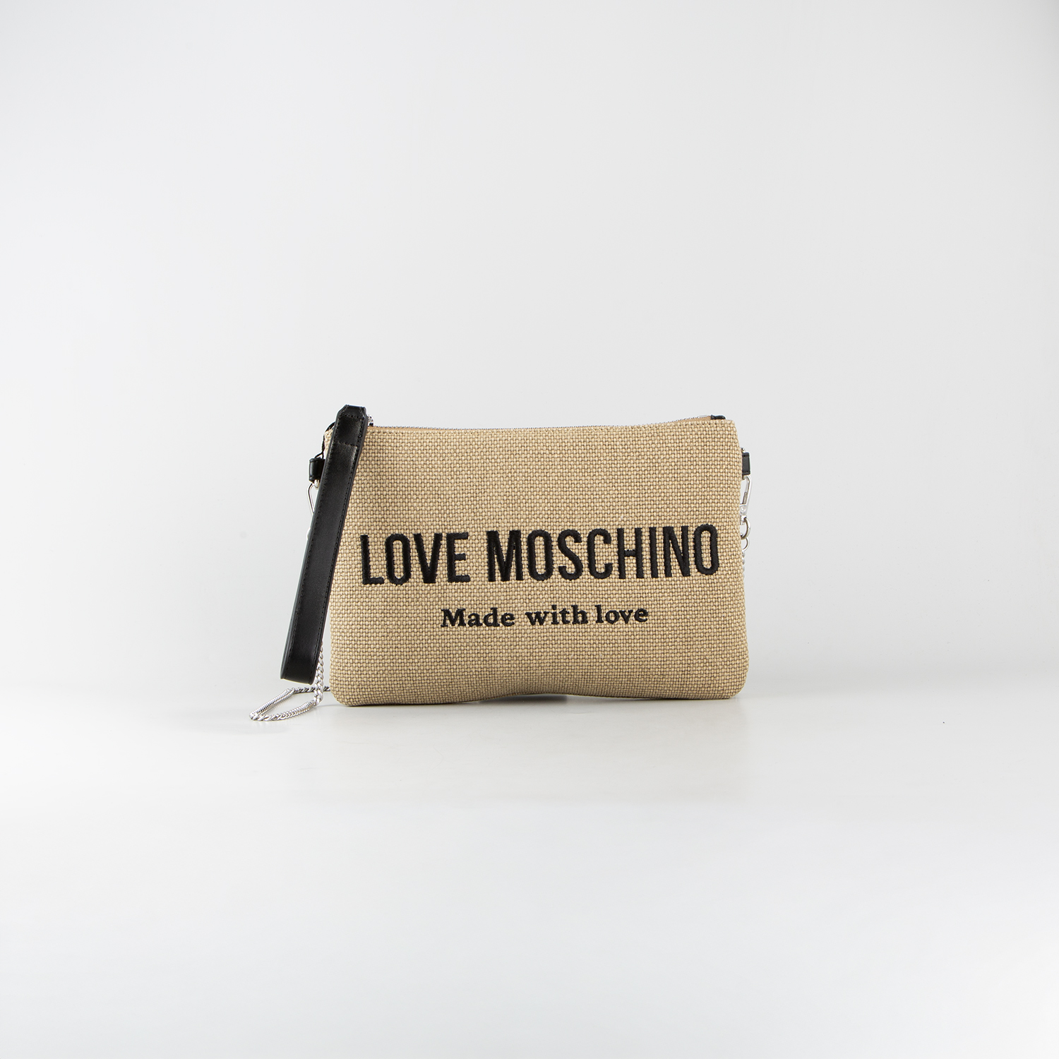 LOVE MOSCHINO WOMEN'S CLUTCH CANVAS SIGNATURE LOVE IN BEIGE