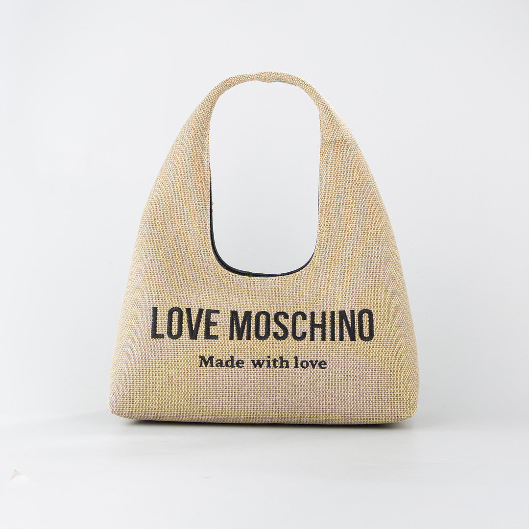 LOVE MOSCHINO WOMEN'S HOBO BAG CANVAS SIGNATURE LOVE IN BEIGE