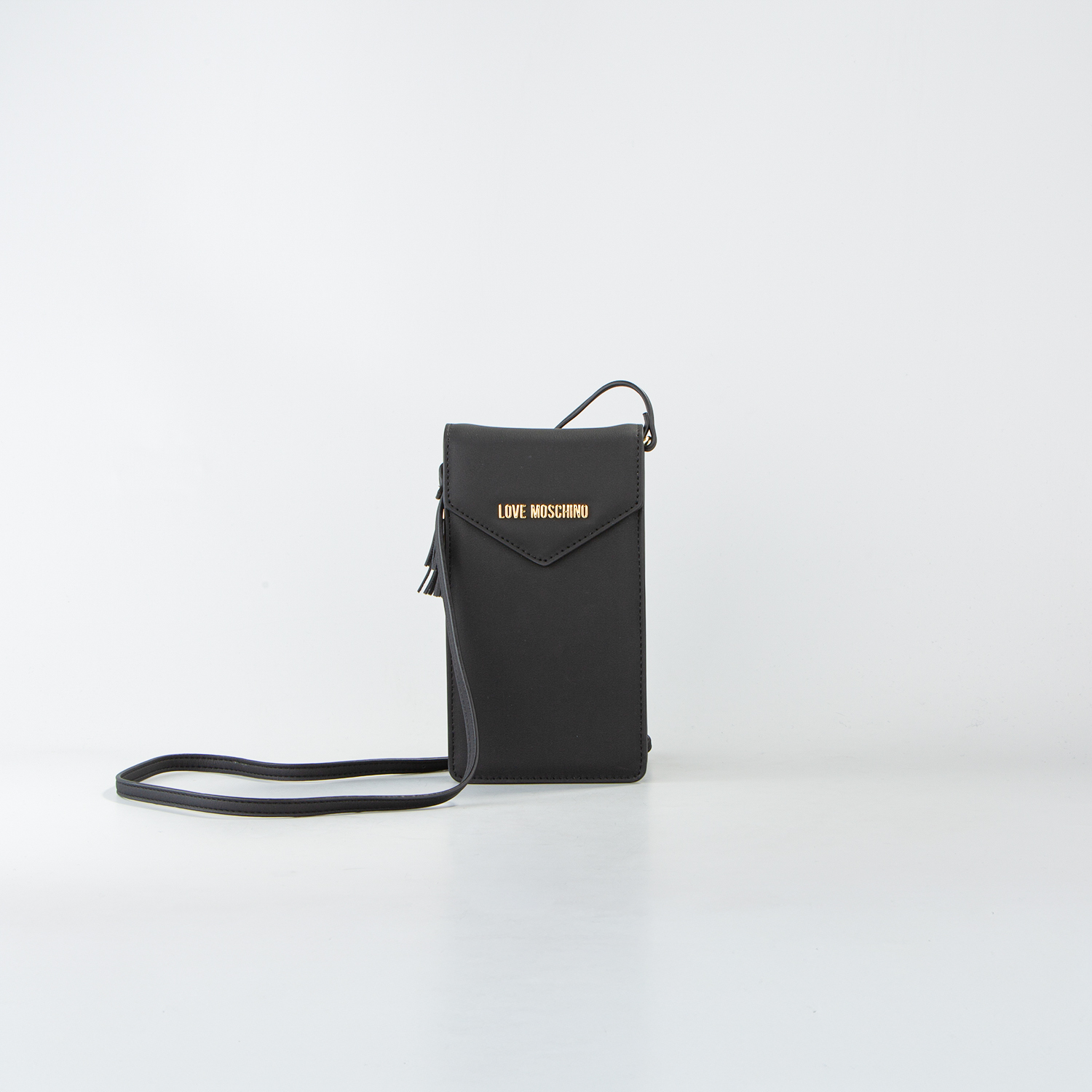 LOVE MOSCHINO WOMEN'S PHONE HOLDER WITH GOLD-TONE LOGO IN BLACK