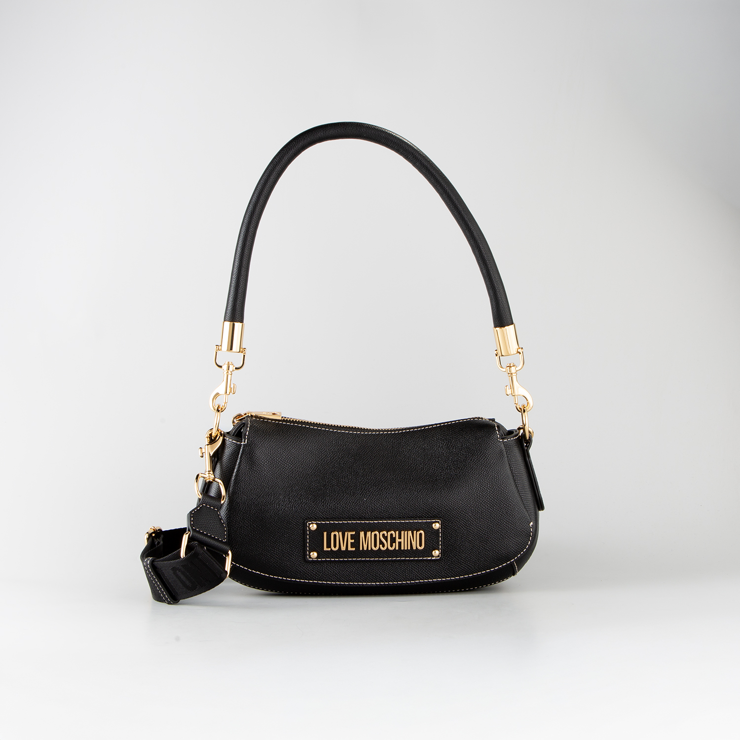 LOVE MOSCHINO WOMEN'S SHOULDER BAG WITH GEOMETRIC HANDLES IN BLACK