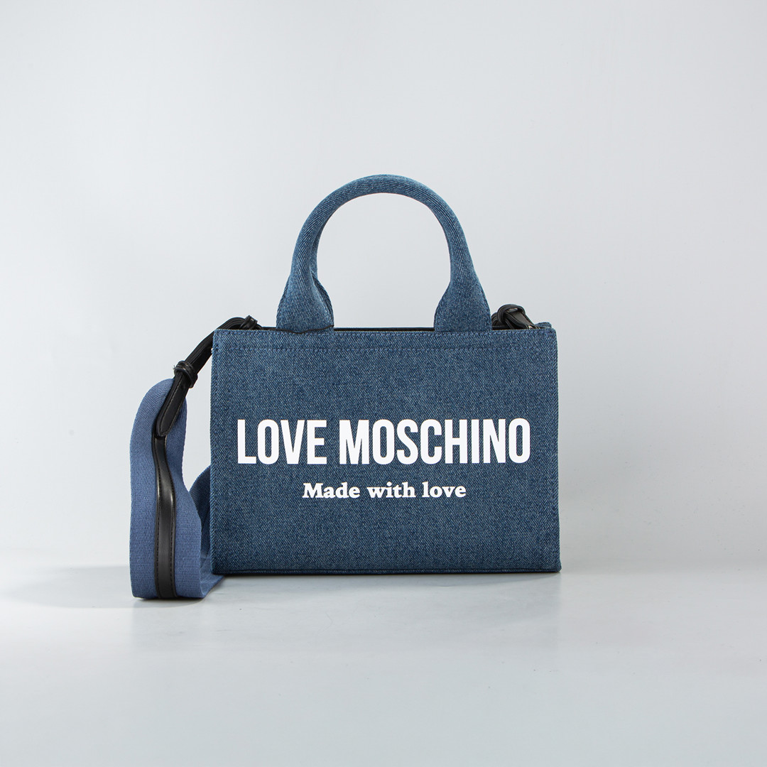 LOVE MOSCHINO WOMEN'S SMALL SHOPPING BAG DENIM SIGNATURE LOVE