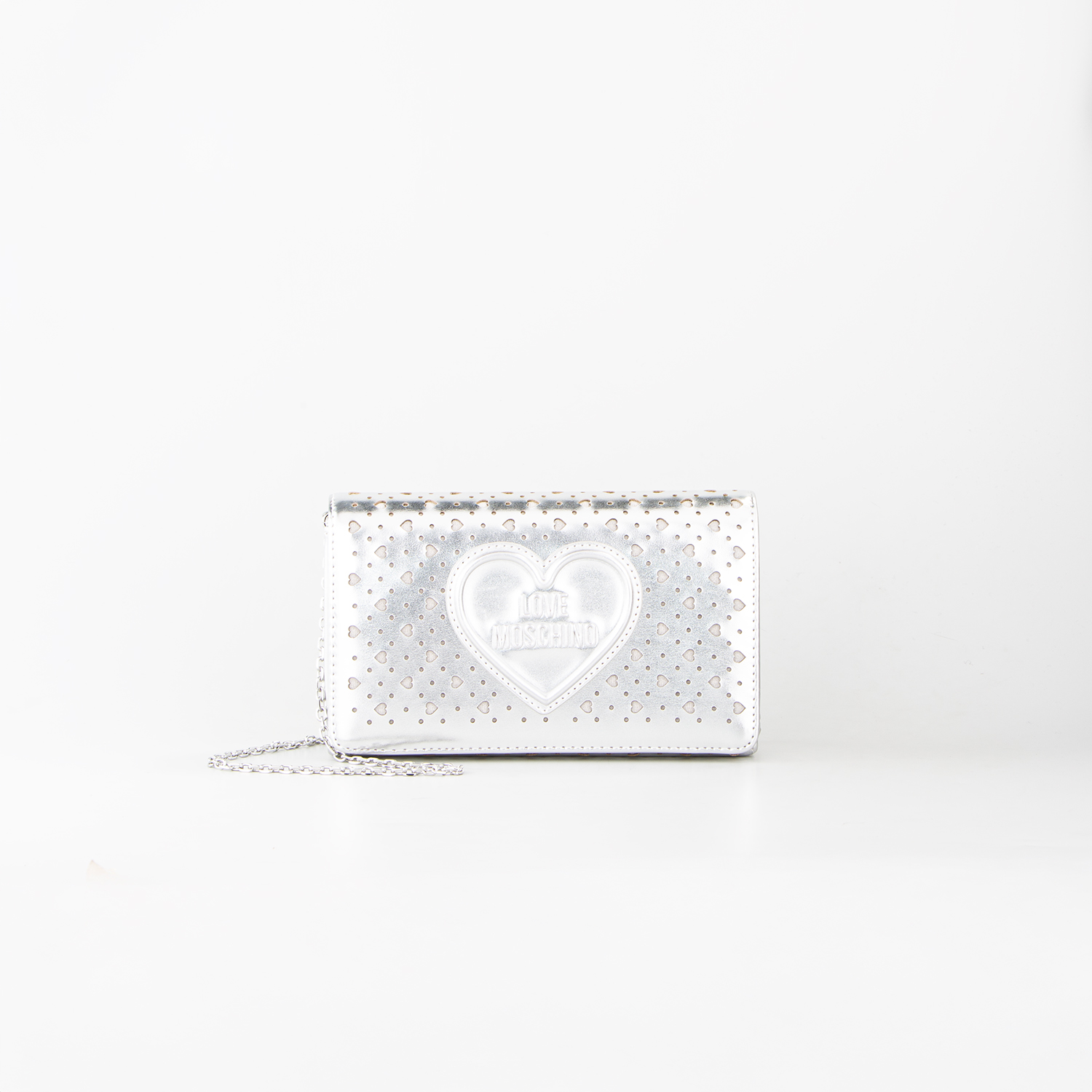 LOVE MOSCHINO WOMEN'S SMART DAILY BAG WITH HEART-SHAPED PERFORATION IN SILVER