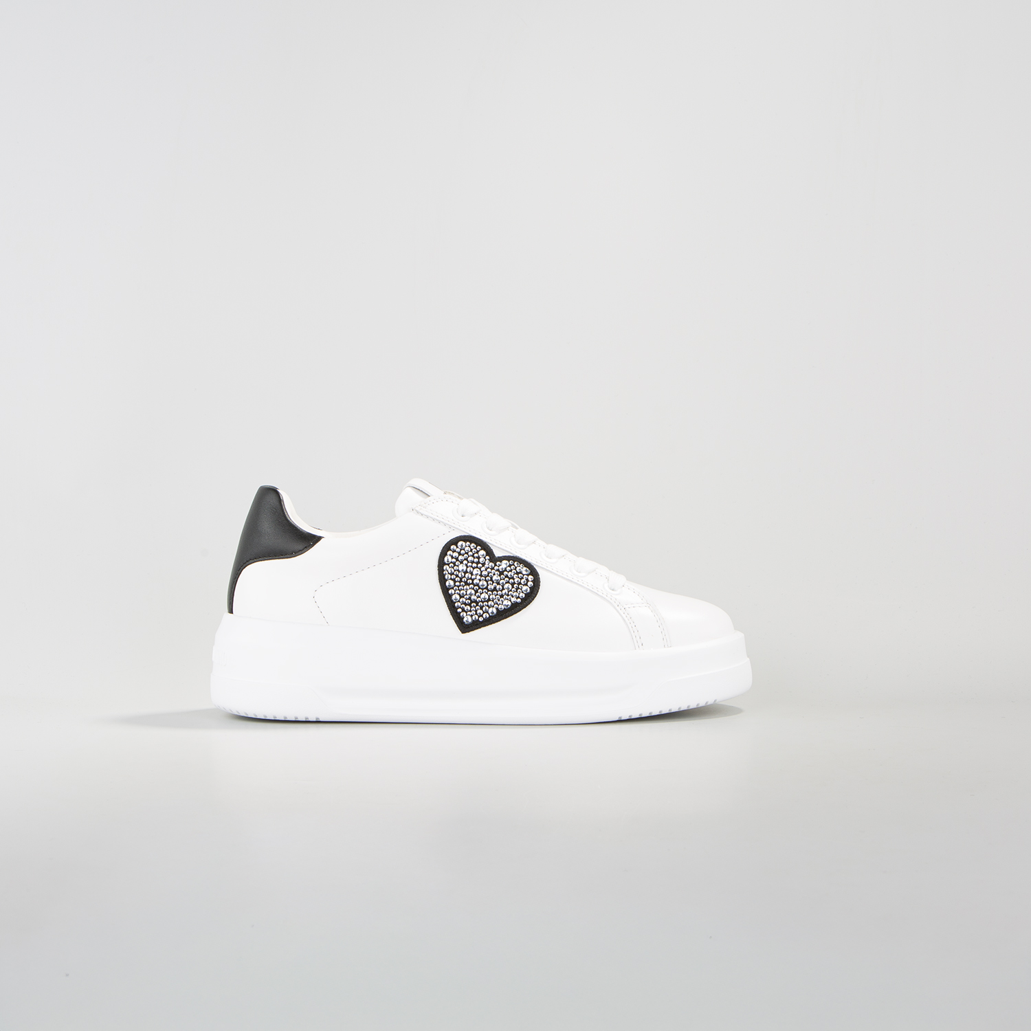 LOVE MOSCHINO WOMEN'S SNEAKERS ECLIPSE CRYSTAL STRASS IN WHITE/BLACK