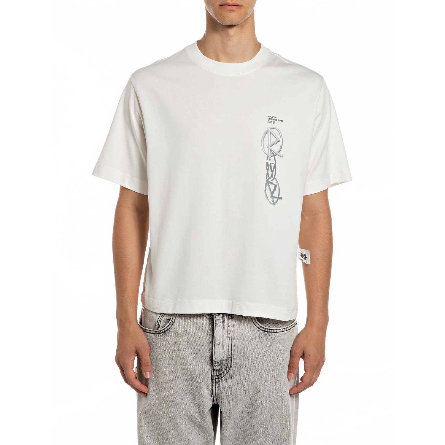 REPLAY INC. COTTON T-SHIRT IN OFF WHITE