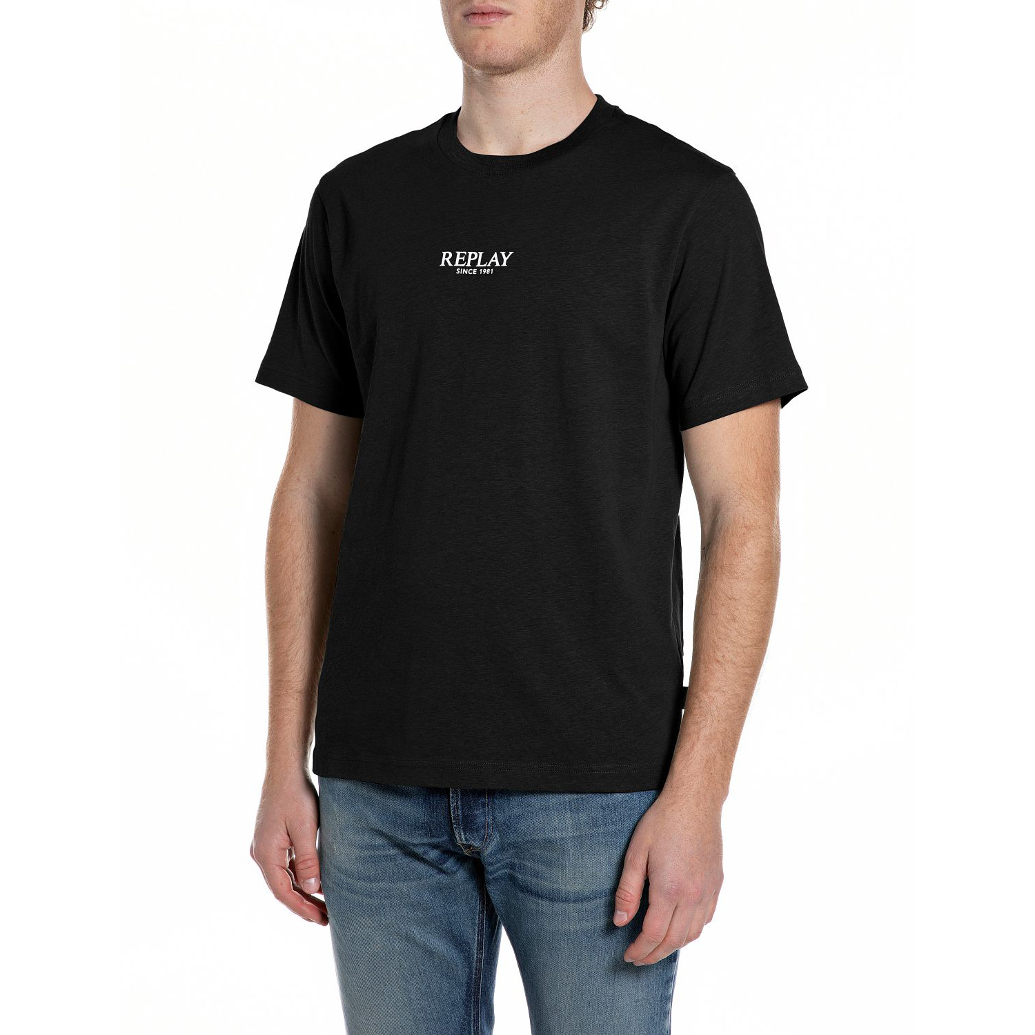 REPLAY MEN'S CREW-NECK COTTON LINEN JERSEY T-SHIRT IN BLACK