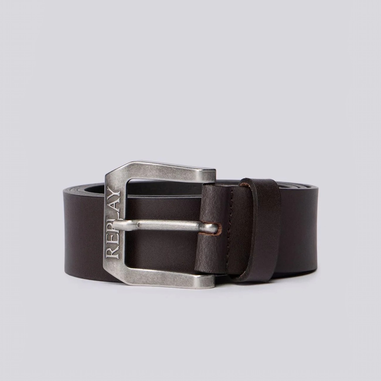 REPLAY MEN'S CRUST LEATHER BELT IN BLACK BROWN