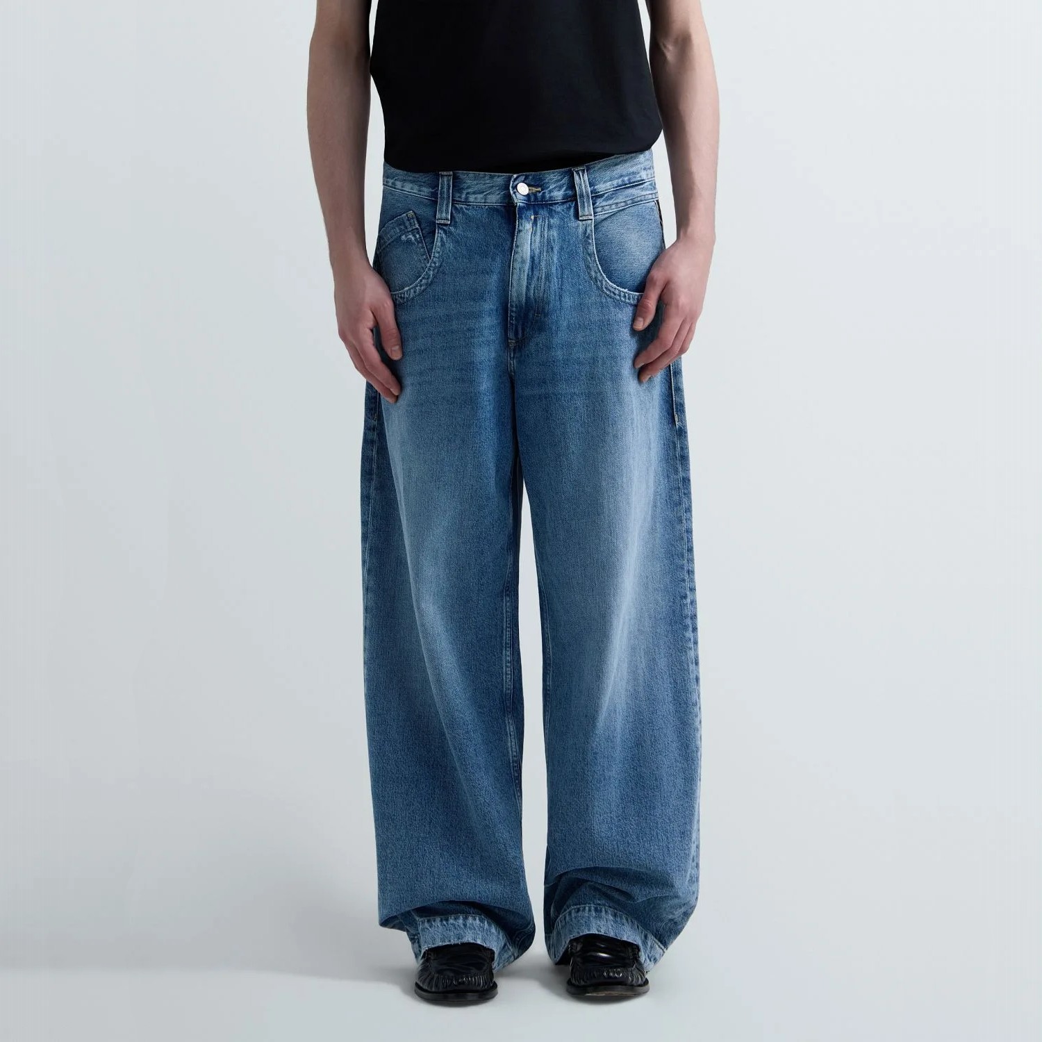 REPLAY MEN'S FERYS BAGGY FIT JEANS 12 OZ RECYCLED INDIGO COTTON IN MEDIUM BLUE