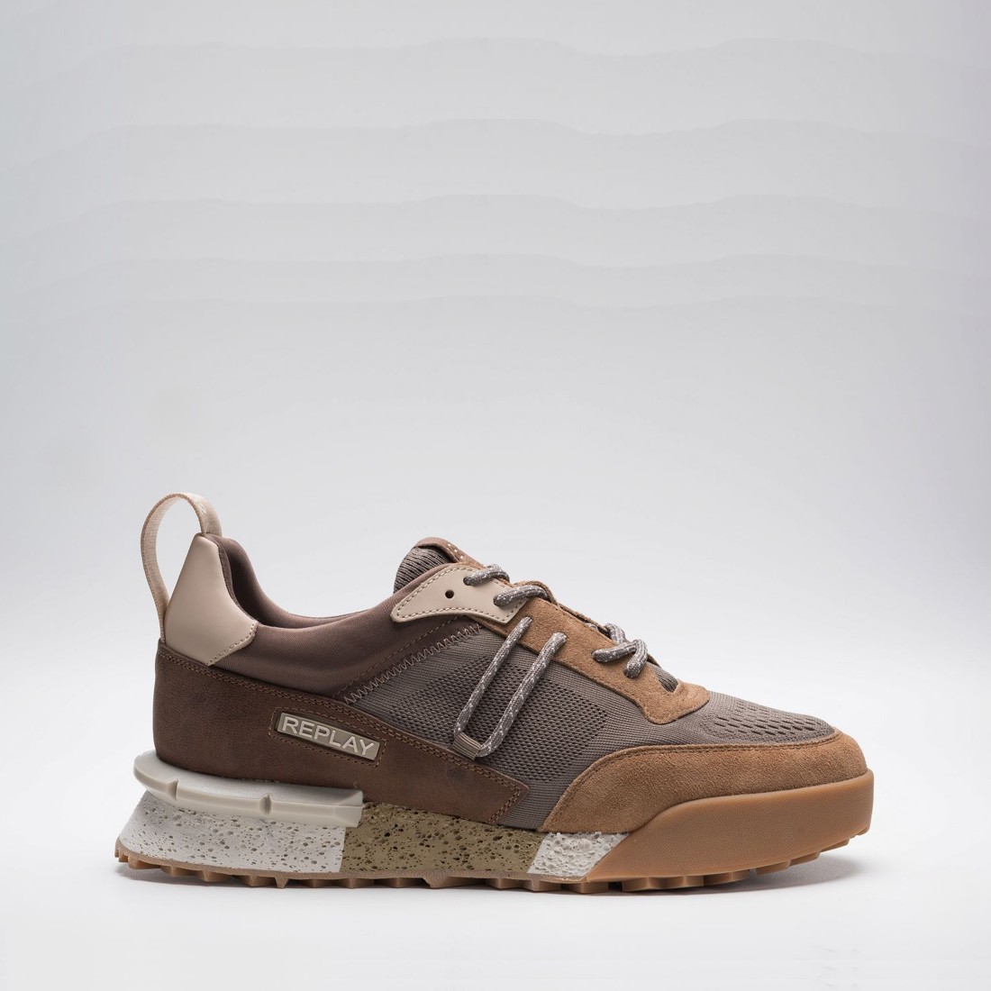 REPLAY MEN'S FIELD JUPITER ENGINEREED LEATHER SNEAKERS IN TAUPE