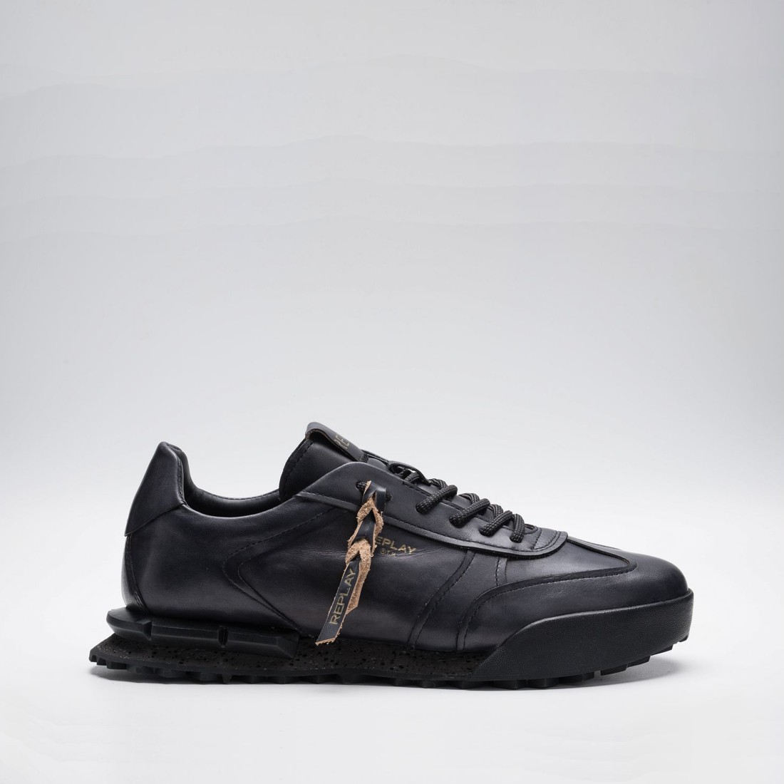 REPLAY MEN'S FIELD LIMITED LEATHER SNEAKERS IN BLACK