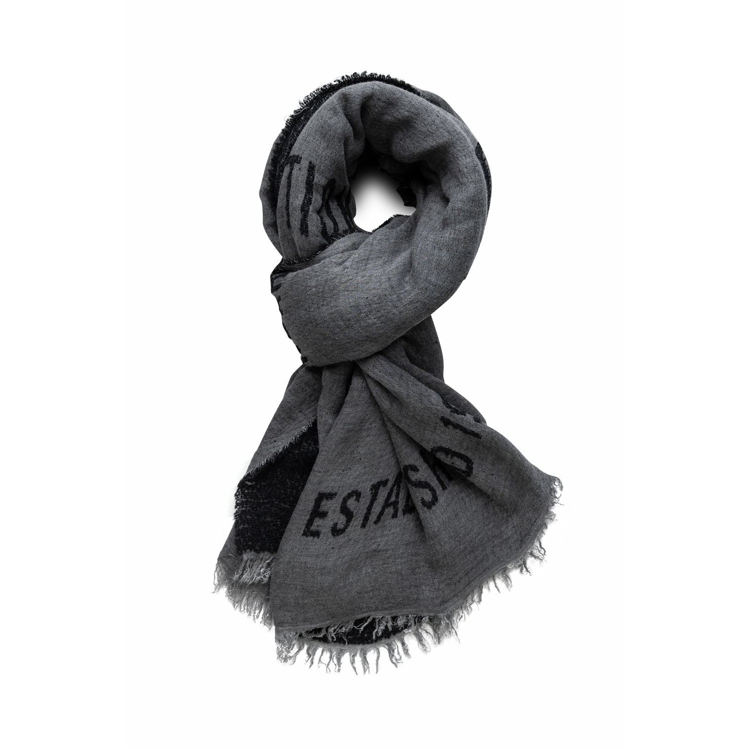 REPLAY MEN'S FRINGED LETTERING SCARF IN WASHED BLACK