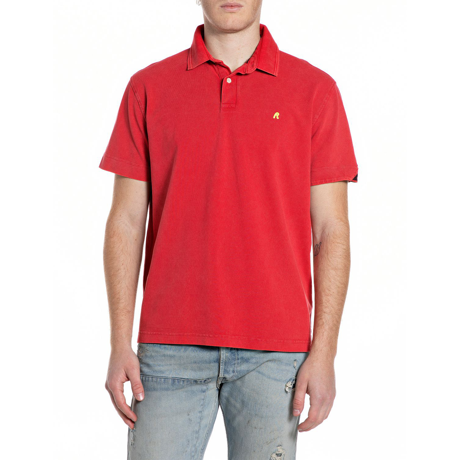 REPLAY MEN'S MARBLE-EFFECT COTTON PIQUÉ POLO-SHIRT IN RED