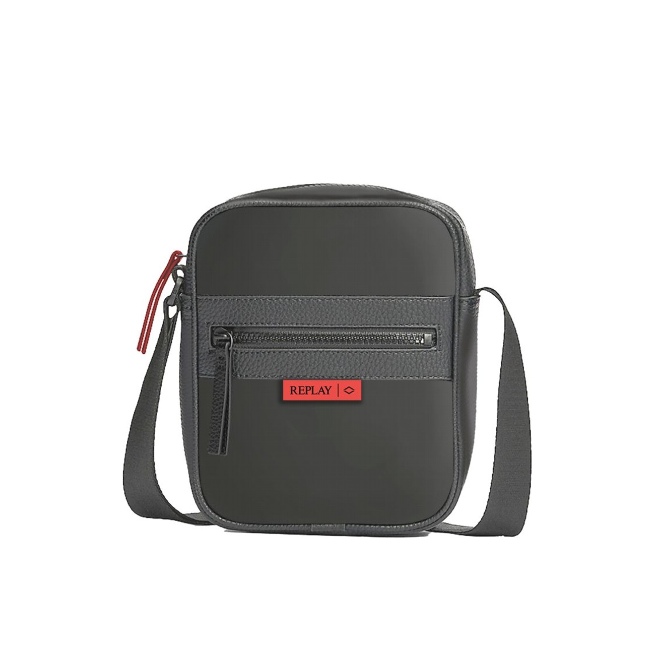 REPLAY MEN'S NYLON AND PU SQUARE-SHAPED BAG IN BLACK