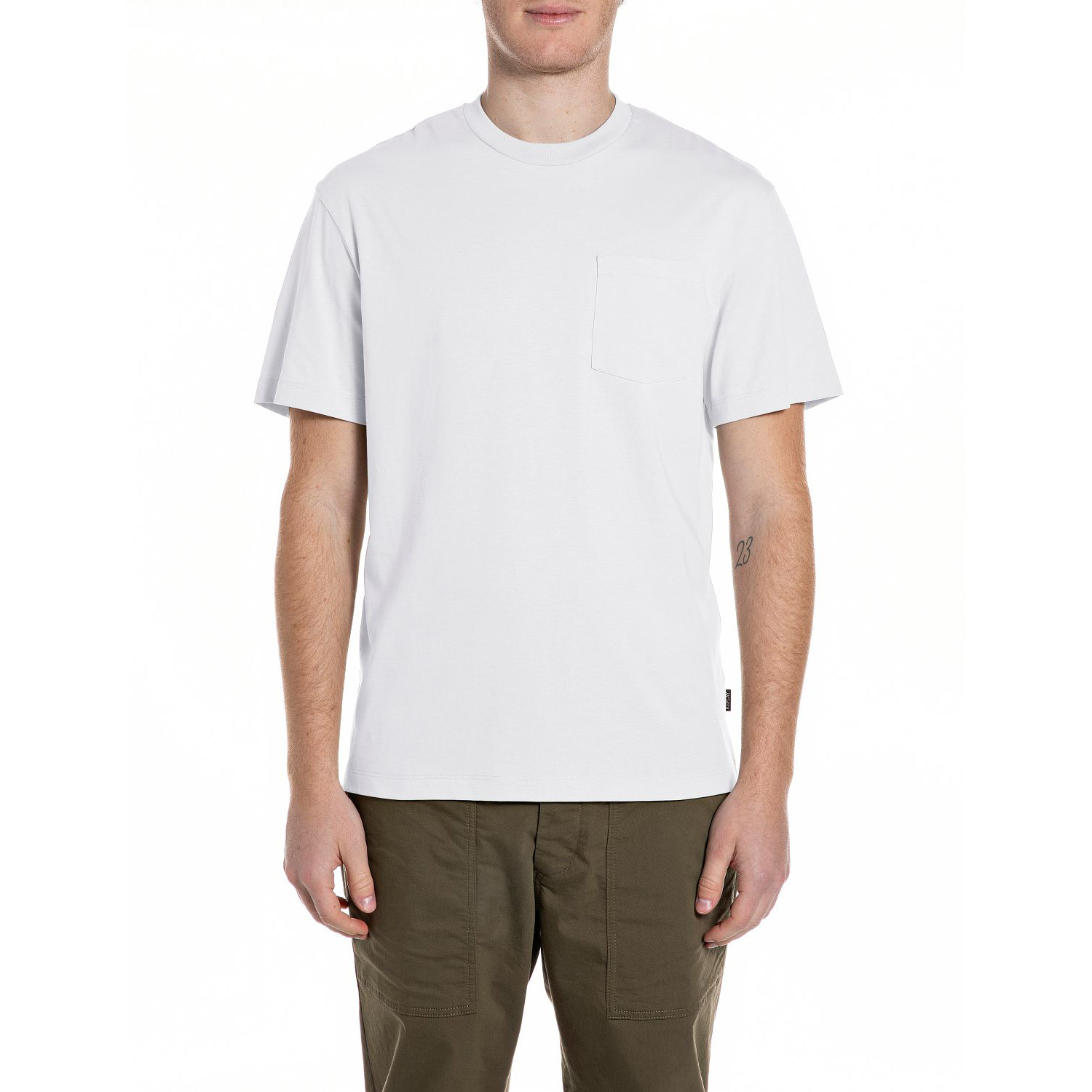 REPLAY MEN'S ORGANIC COTTON T-SHIRT WITH CHEST POCKET AND PRINTED BACK IN NATURAL WHITE