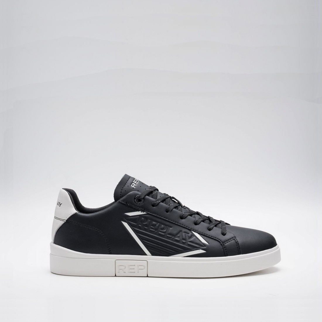 REPLAY MEN'S POLYS STAMP LEATHER SNEAKERS IN BLACK WHITE
