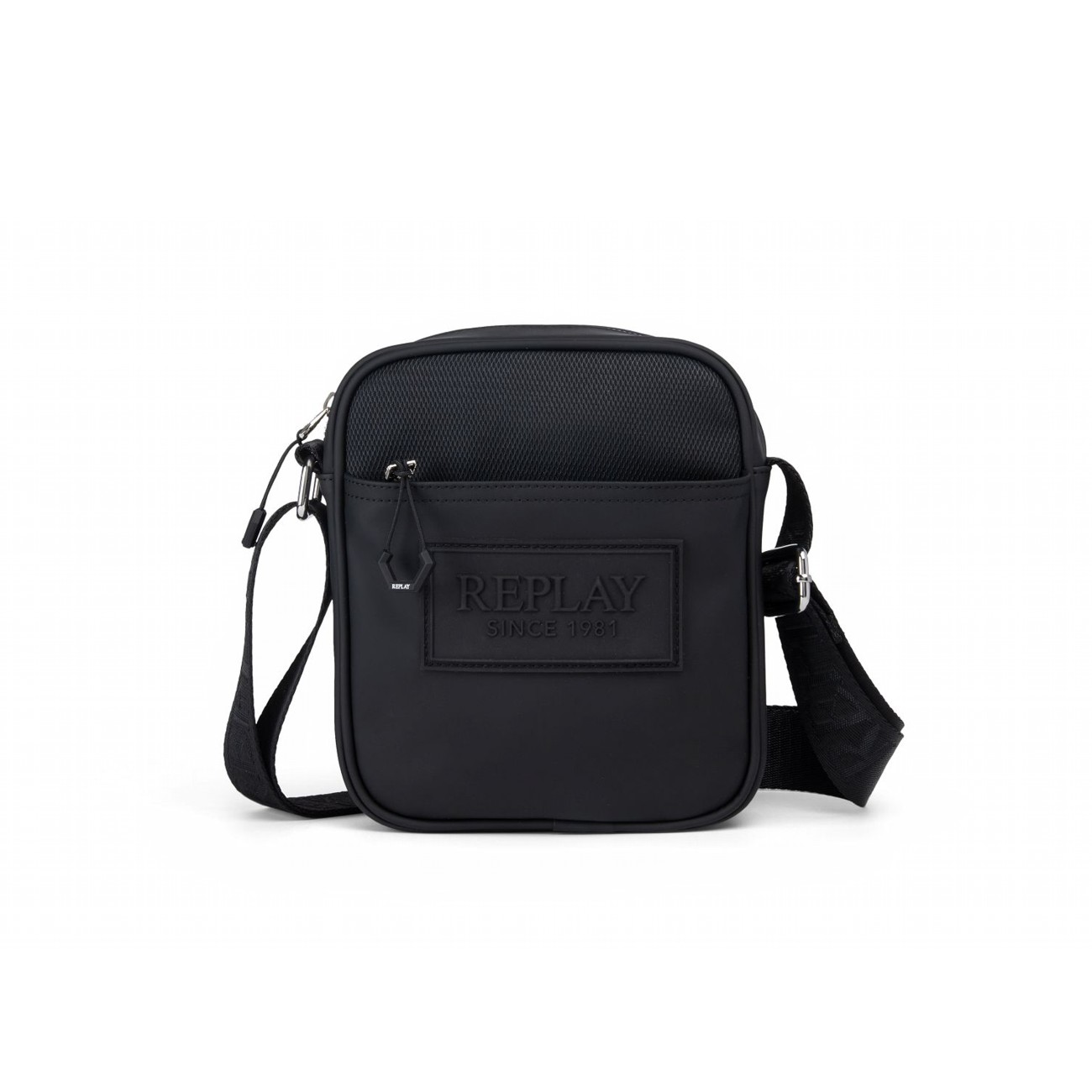 REPLAY MEN'S RUBBER + MESH PU SQUARE-SHAPED BAG IN BLACK