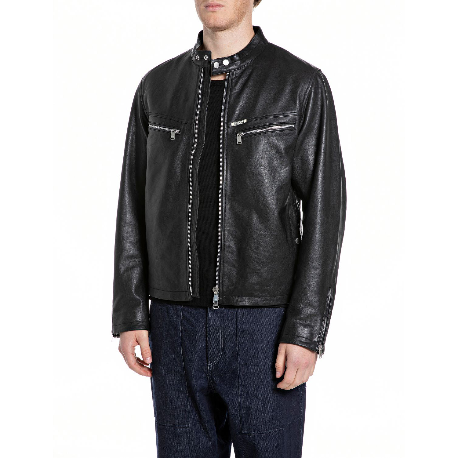 REPLAY MEN'S WAXED LEATHER BIKER JACKET IN BLACK