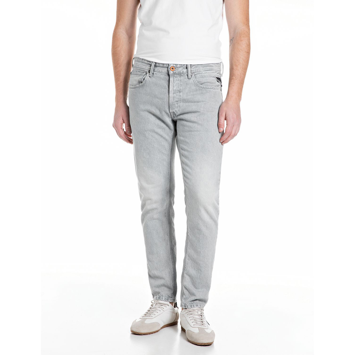 REPLAY MEN'S WILLBI REGULAR FIT JEANS 11 OZ COTTON GREY IN LIGHT GREY