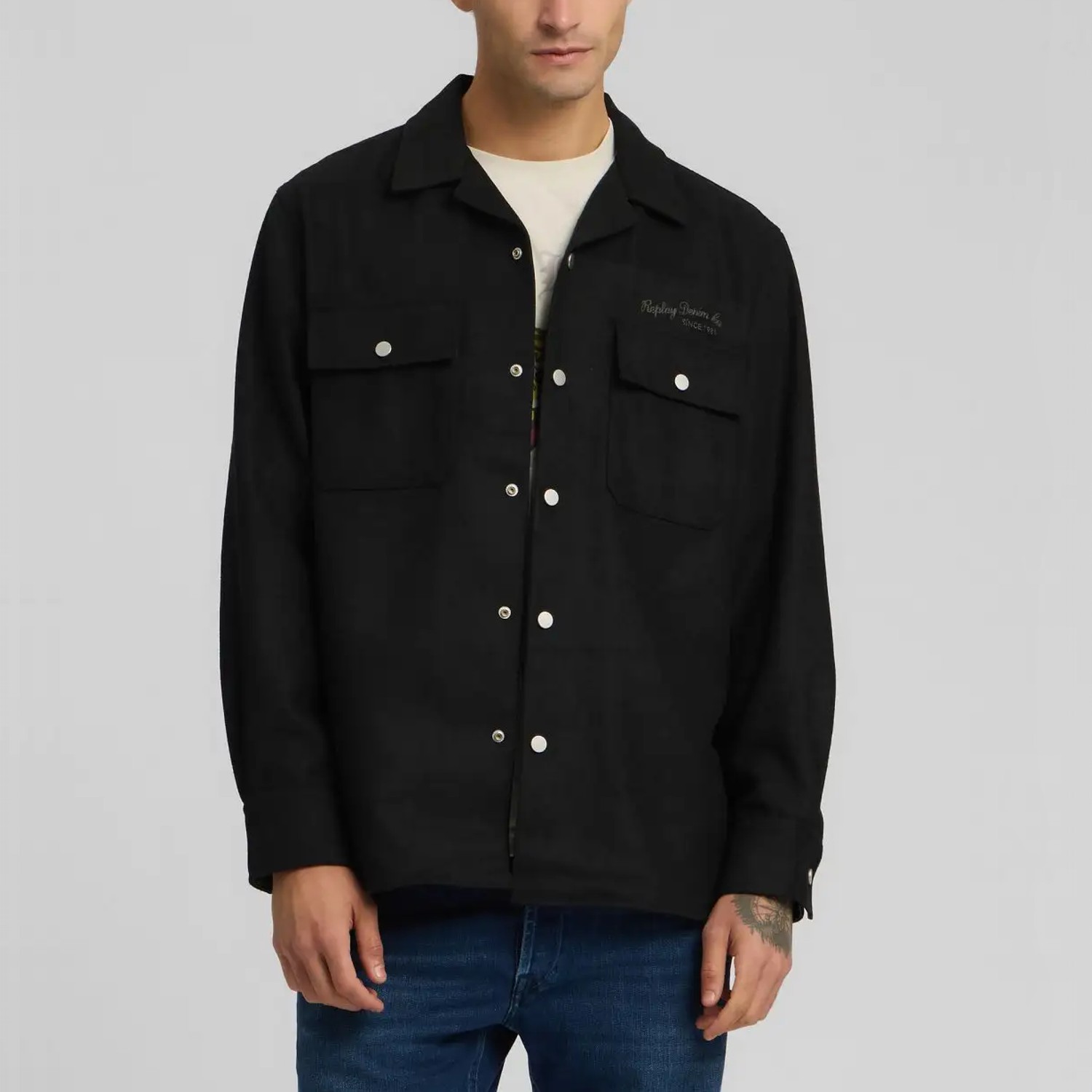 REPLAY MEN'S WOOLEN MELTON SHACKET IN BLACK