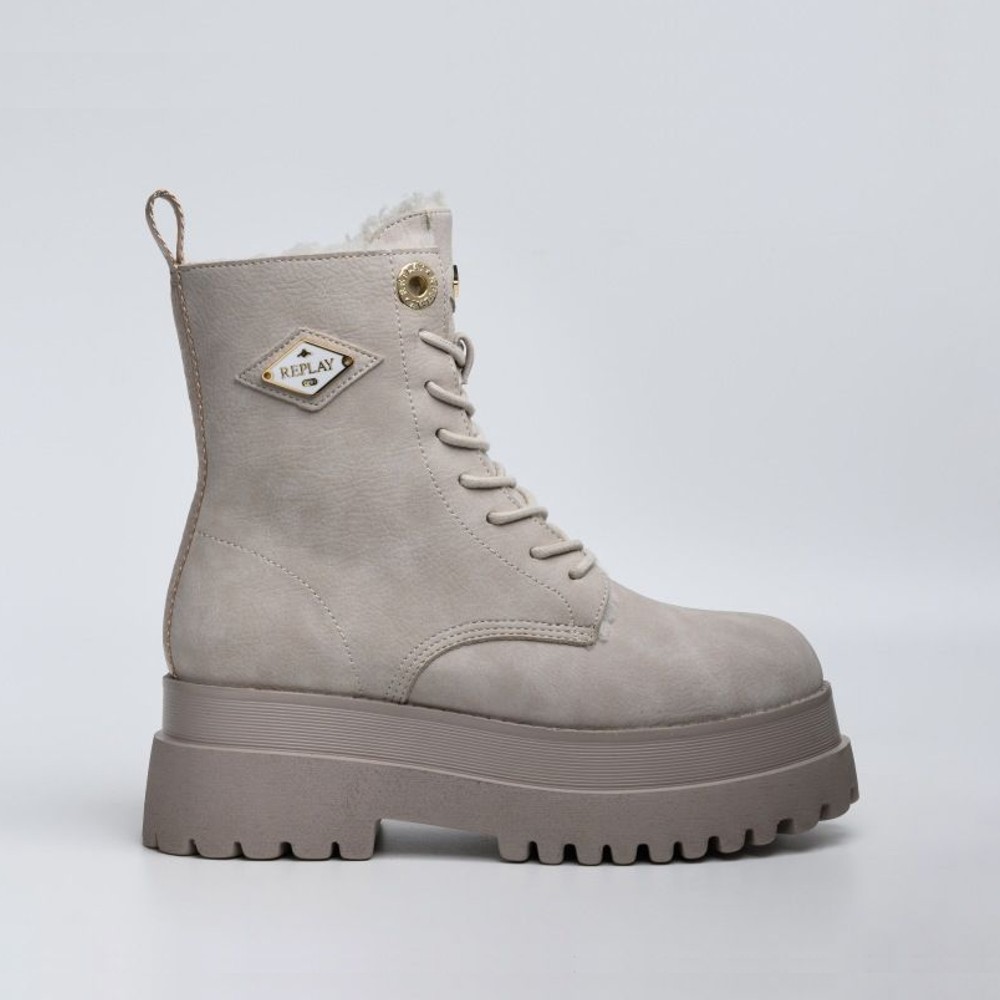 REPLAY WOMEN'S ANY ROMBUS BOOTS WITH LACES IN BEIGE