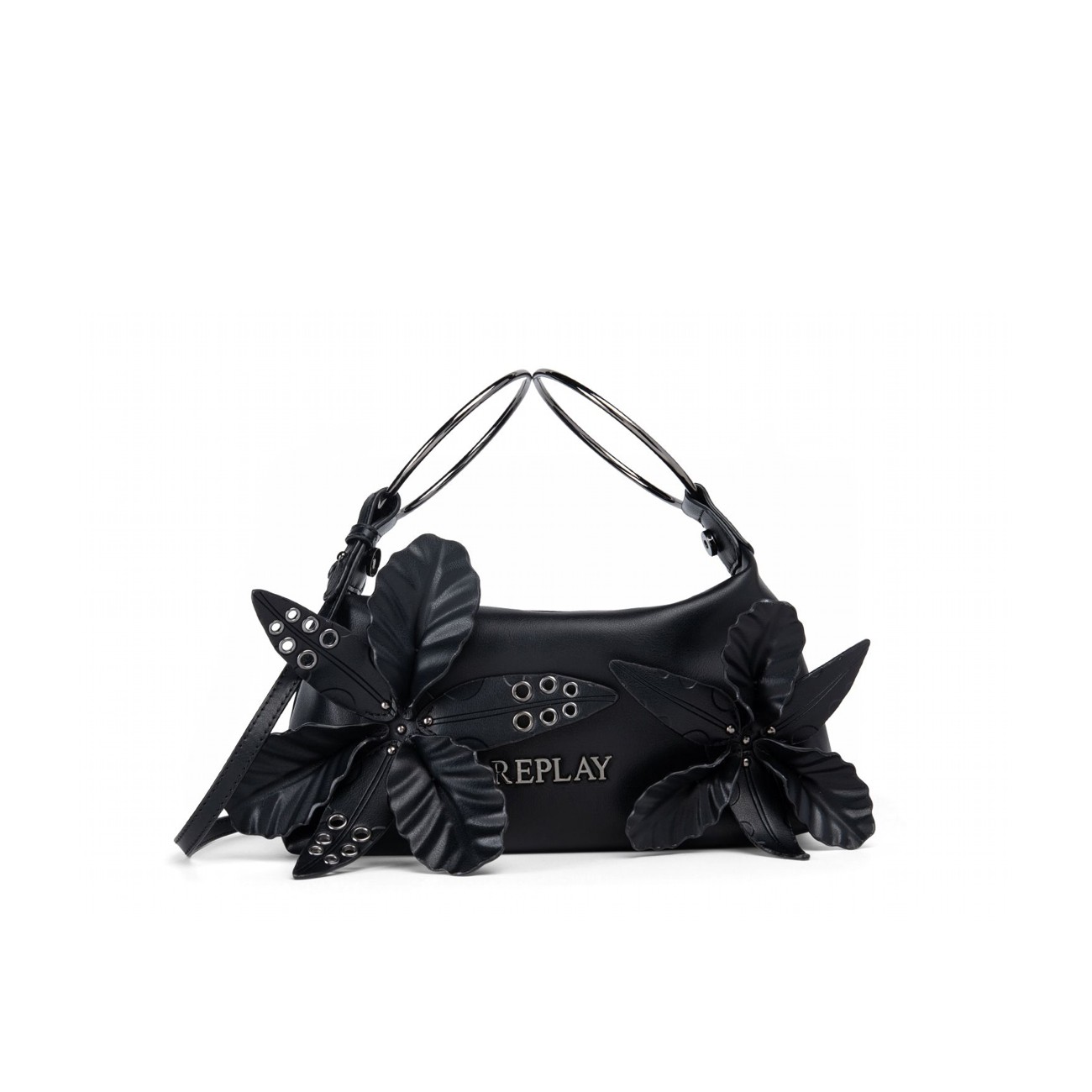 REPLAY WOMEN'S BAG WITH FLOWERS IN BLACK