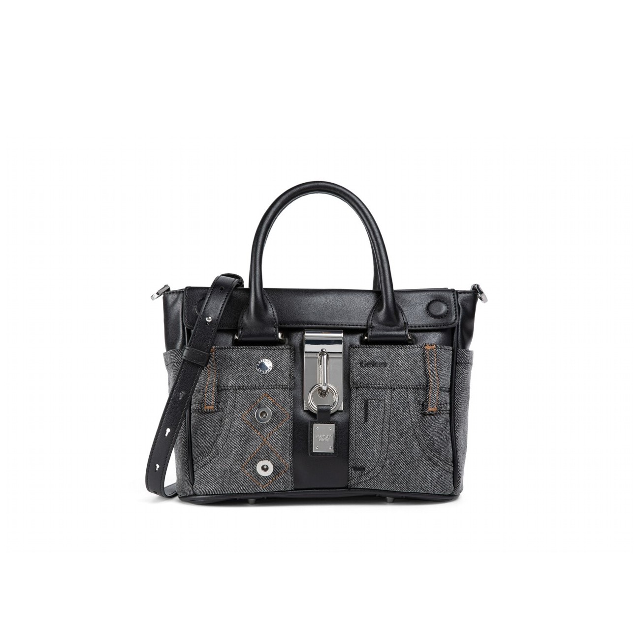 REPLAY WOMEN'S BAG WITH WASHED DENIM AND PADLOCK IN WASHED BLACK+BLACK