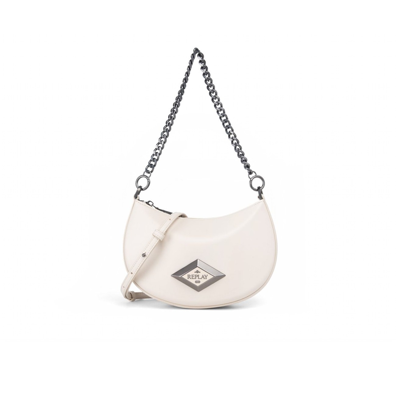REPLAY WOMEN'S CROSSBODY BAG IN SOFT PU WITH METALLIC DIAMOND LOGO IN WHITE SMOKE