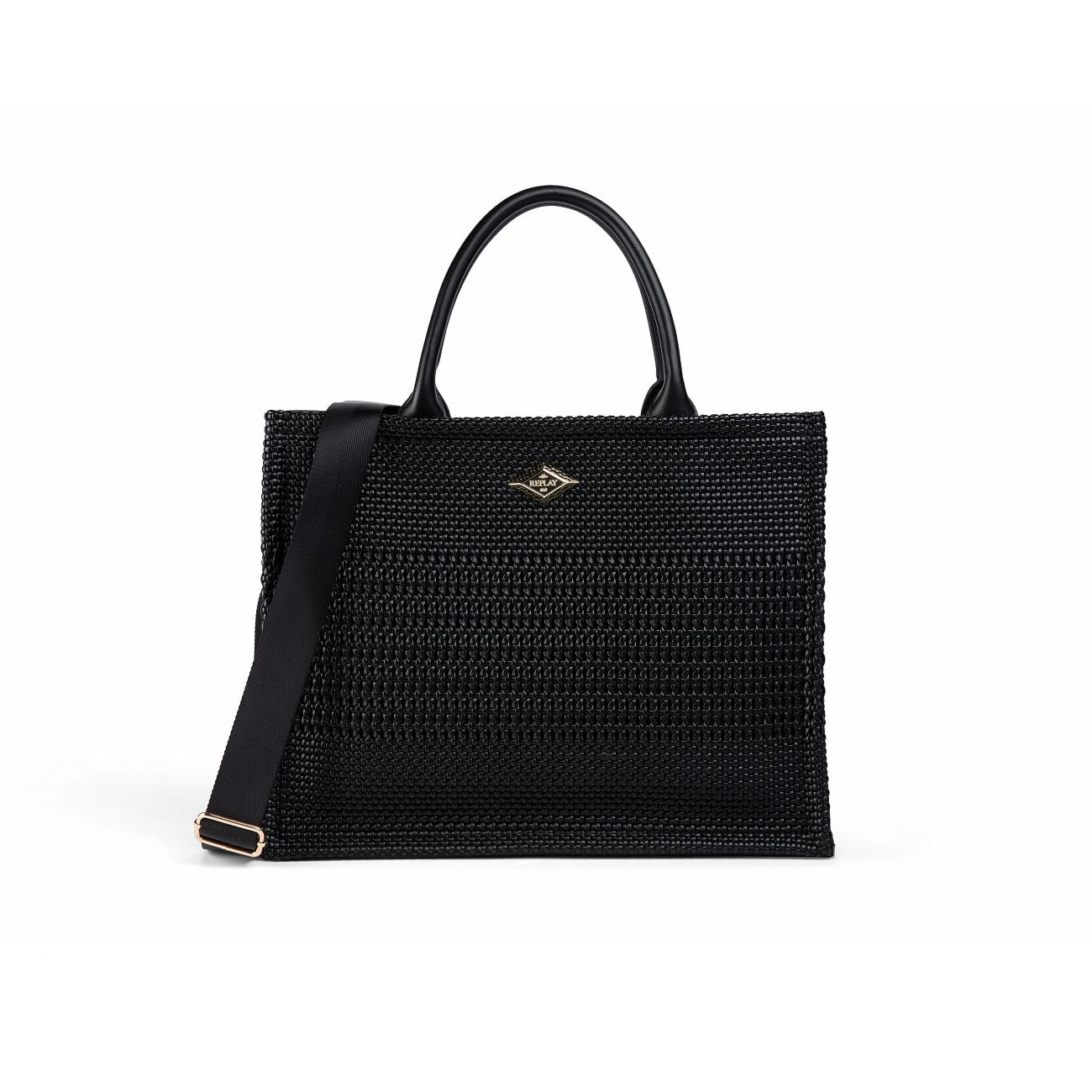 REPLAY WOMEN'S INTERLACE TOTE BAG IN BLACK