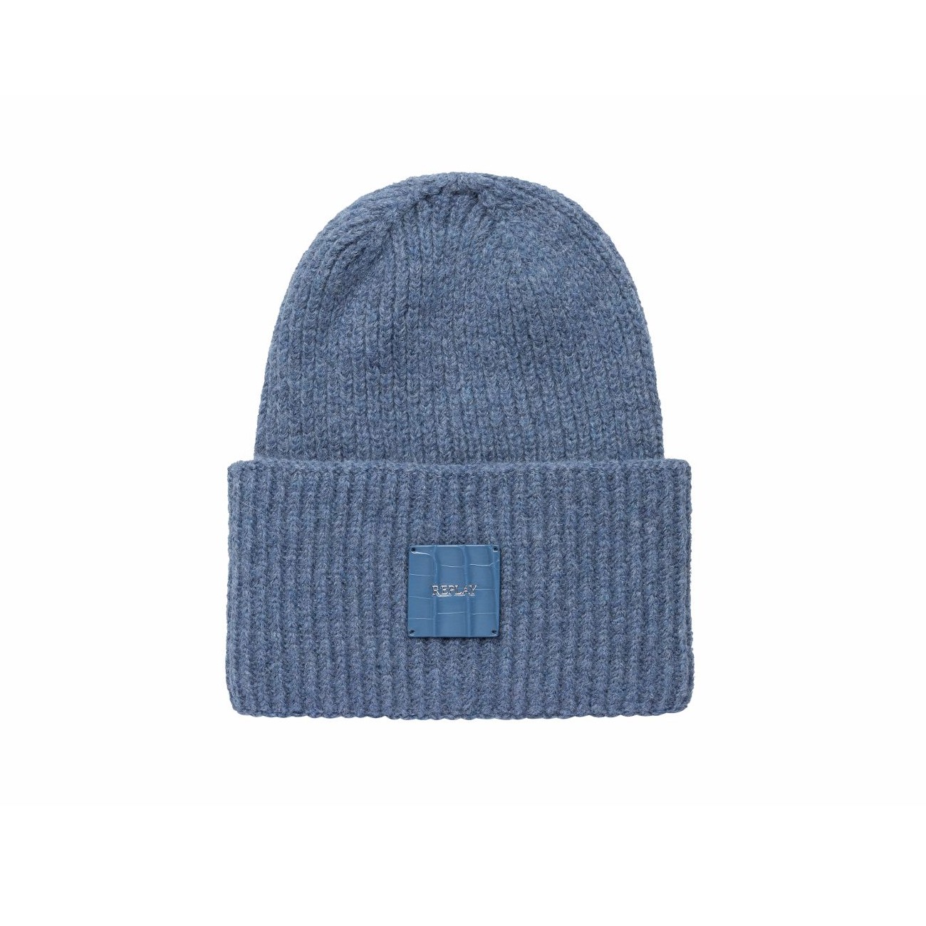 REPLAY WOMEN'S KNITTED BEANIE WITH TURN-UP IN BLUESTEEL