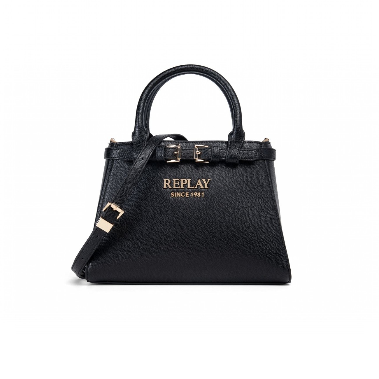 REPLAY WOMEN'S MID SOLID-COLOUR HAND BAG IN BLACK