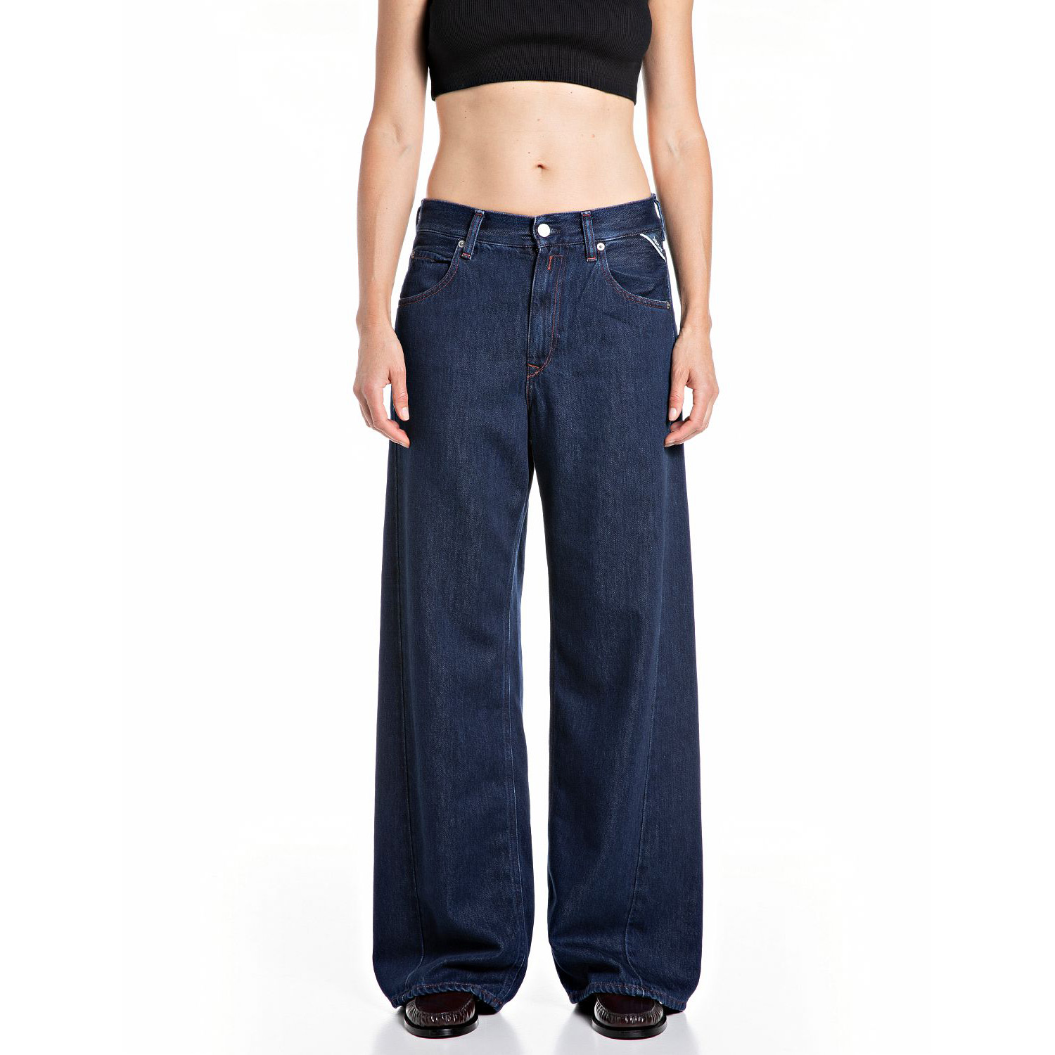 REPLAY WOMEN'S NARJA BAGGY FIT JEANS 12.5 OZ COTTON/LYOCELL INDIGO IN DARK BLUE
