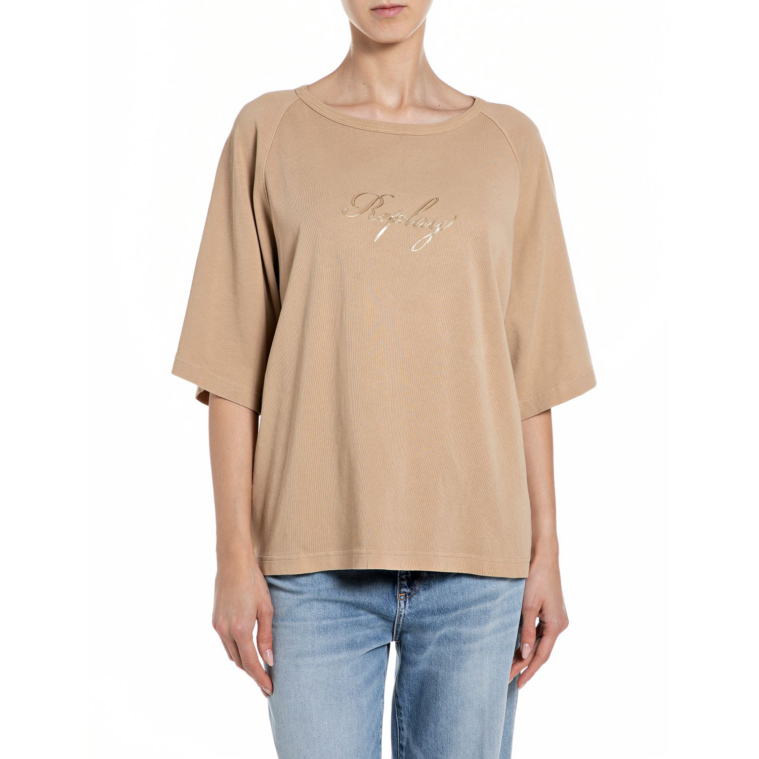 REPLAY WOMEN'S OVERSIZED RUSTIC JERSEY T-SHIRT IN SAND